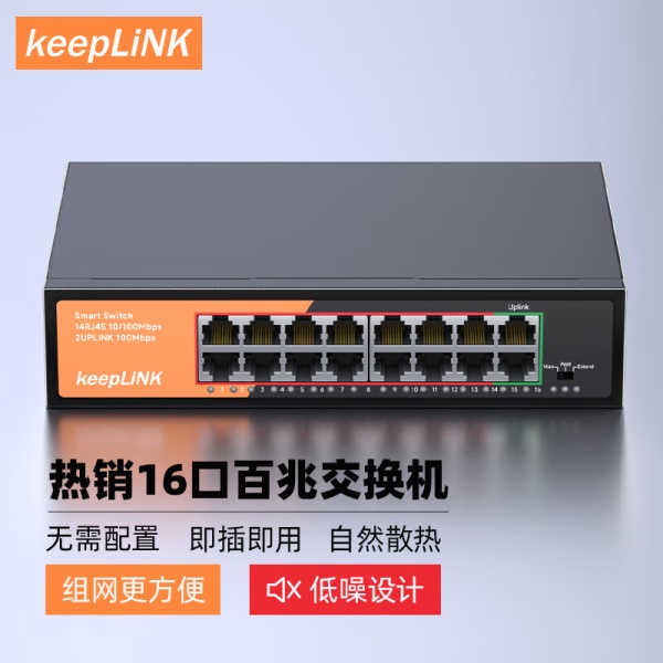 keepLINK友联KP-9000-16T百兆16口交换机企业级家用宿舍安防监控网络分线器分流器交换器