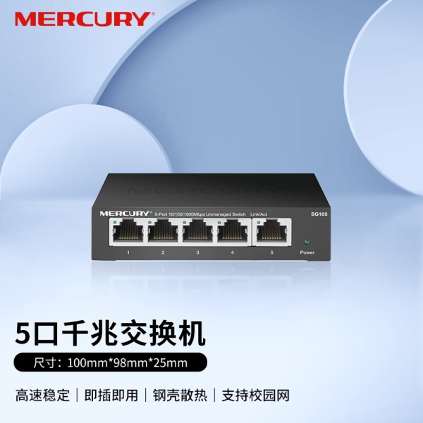 水星(MERCURY)SG105 5口千兆钢壳交换机 4口网线网络分线器