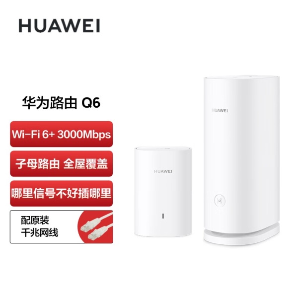 华为凌霄子母路由 Q6(1母1子套装)3000Mbps 千兆凌霄子母路由 家用全屋WiFi 6+ PLC电力线版