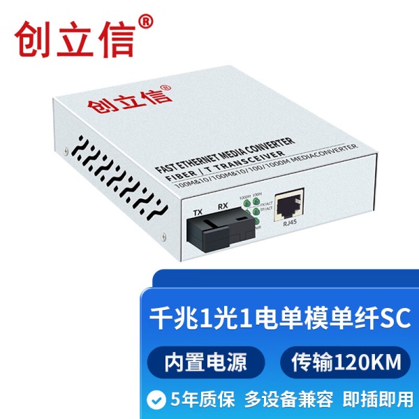 创立信 光纤收发器 光电转换器 网络光端机 千兆1光1电单模单纤SC内电120KM 1台