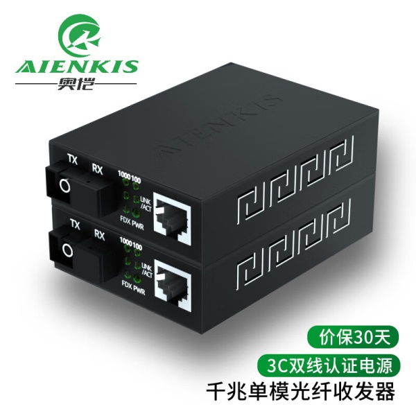 奥恺(AIENKIS) AK-S03G-SC03A/B 千兆单模单纤光纤收发器 光电转换器