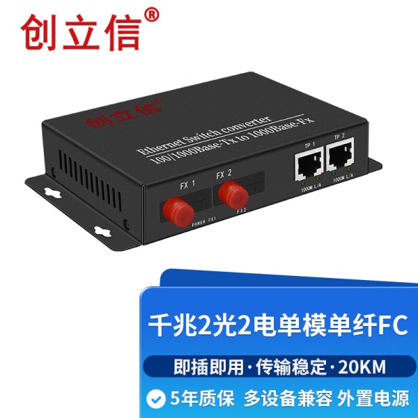 创立信 光纤收发器 光电转换器 网络光端机 千兆2光2电单模单纤FC外电20KM 1台