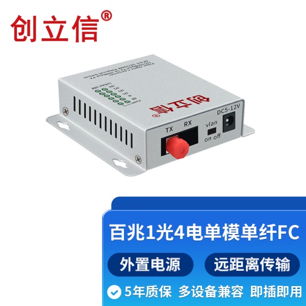 创立信 光纤收发器 光电转换器 网络交换机 百兆1光4电单模单纤FC外电20KM 1台