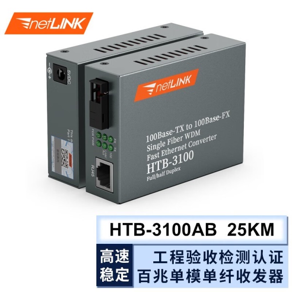 netLINK HTB-3100AB 百兆单模单纤光纤收发器 光电转换器 25公里 商业级 一对 0-25KM