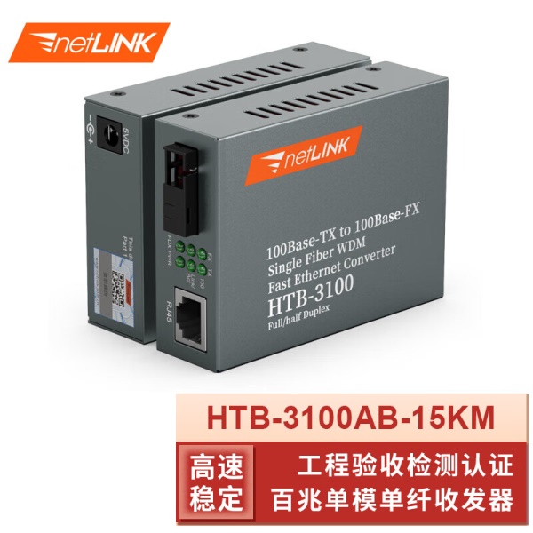 netLINK HTB-3100AB-15KM 光纤收发器 百兆单模单纤光电转换器 0-15公里 DC5V