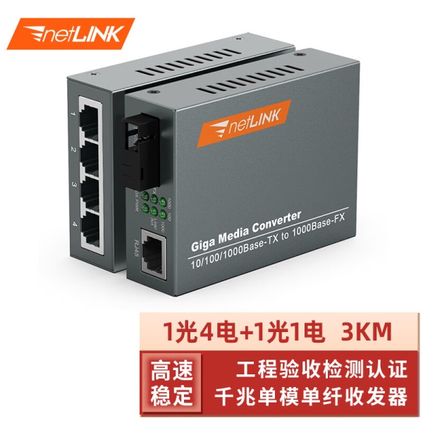 netLINK 千兆1光4电+1光1电光纤收发器 光电转换器 单模单纤 HTB-GS-03/4GE-3A+HTB-GS-03/3B