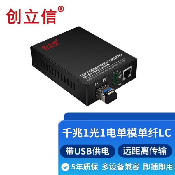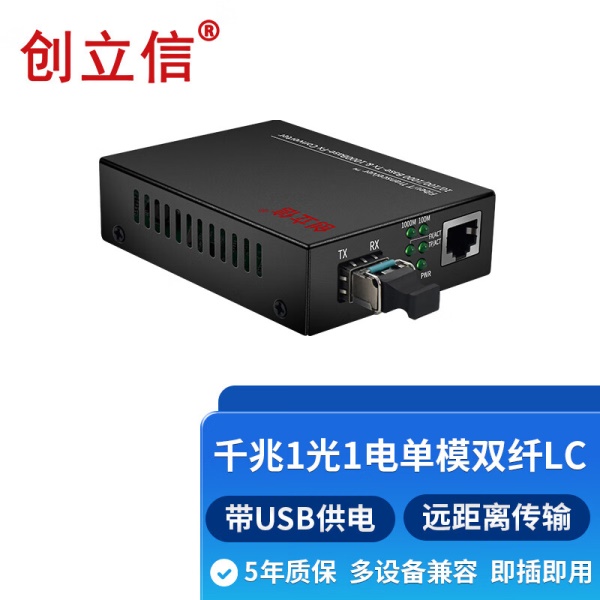 创立信 光纤收发器 光电转换器 网络交换机 千兆1光1电单模单纤LC带USB供电 1台