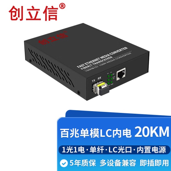 创立信 光纤收发器 光电转换器 网络光端机 百兆1光1电单模单纤LC内电20KM 1台