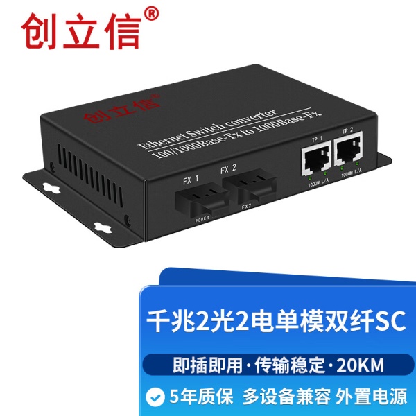 创立信 光纤收发器 光电转换器 网络光端机 千兆2光2电单模双纤SC外电20KM 1台
