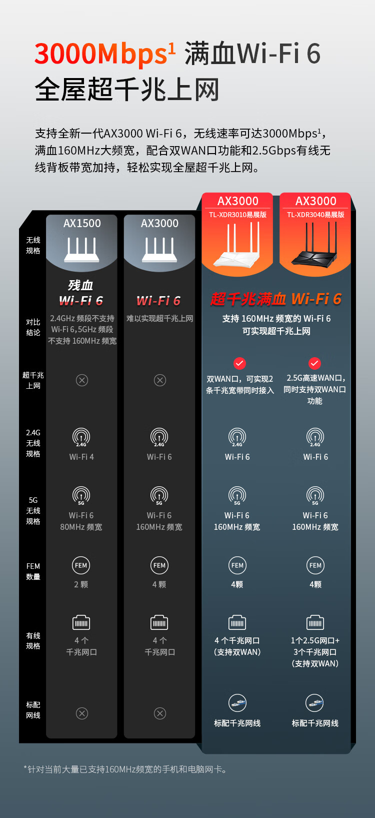 TP-LINK 大道AX3000满血WiFi6千兆无线路由器 5G双频 Mesh 3000M无线速率 支持双宽带接入