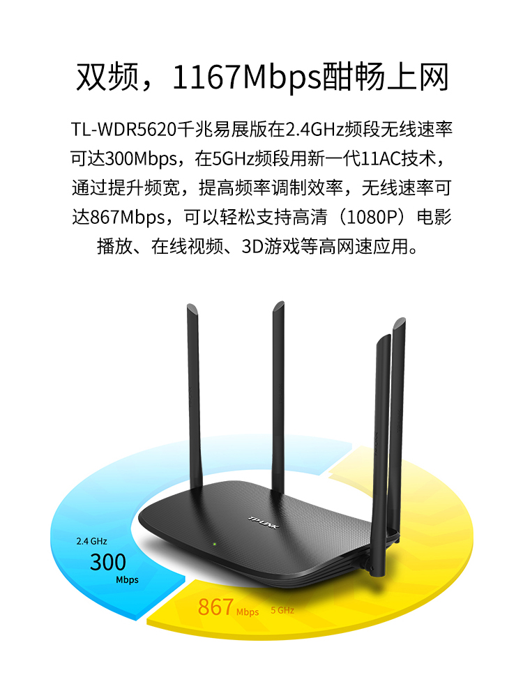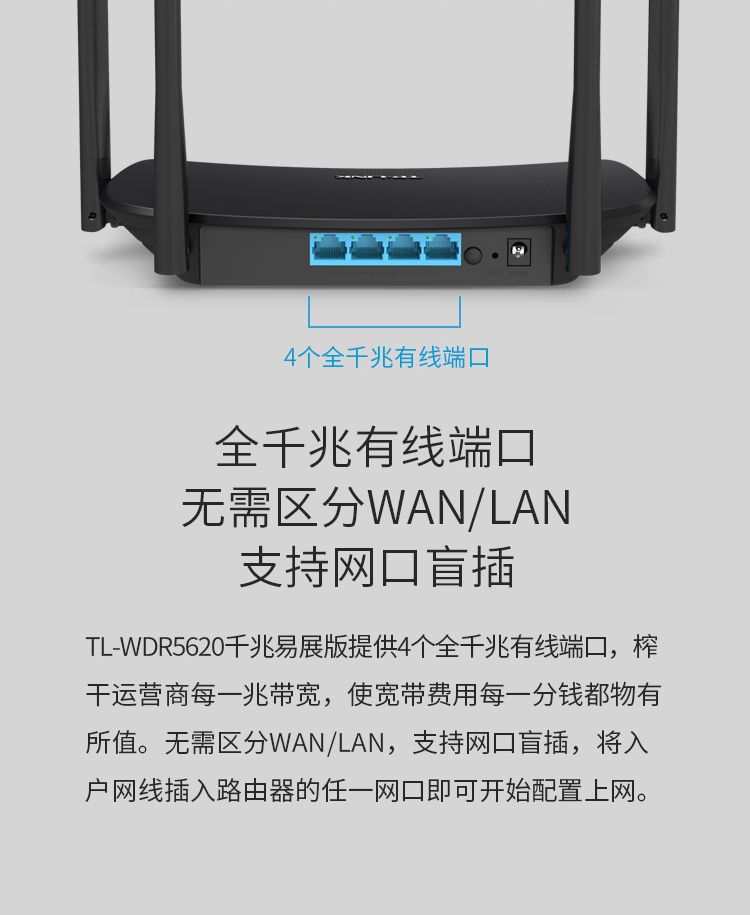 TP-LINK双千兆路由器 易展mesh分布式 AC1200无线家用穿墙 5G双频 WDR5620千兆易展版 配千兆网线