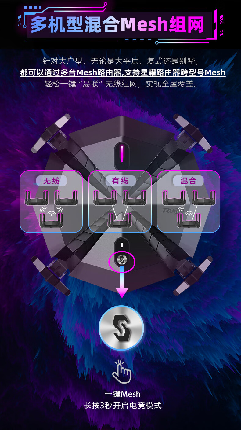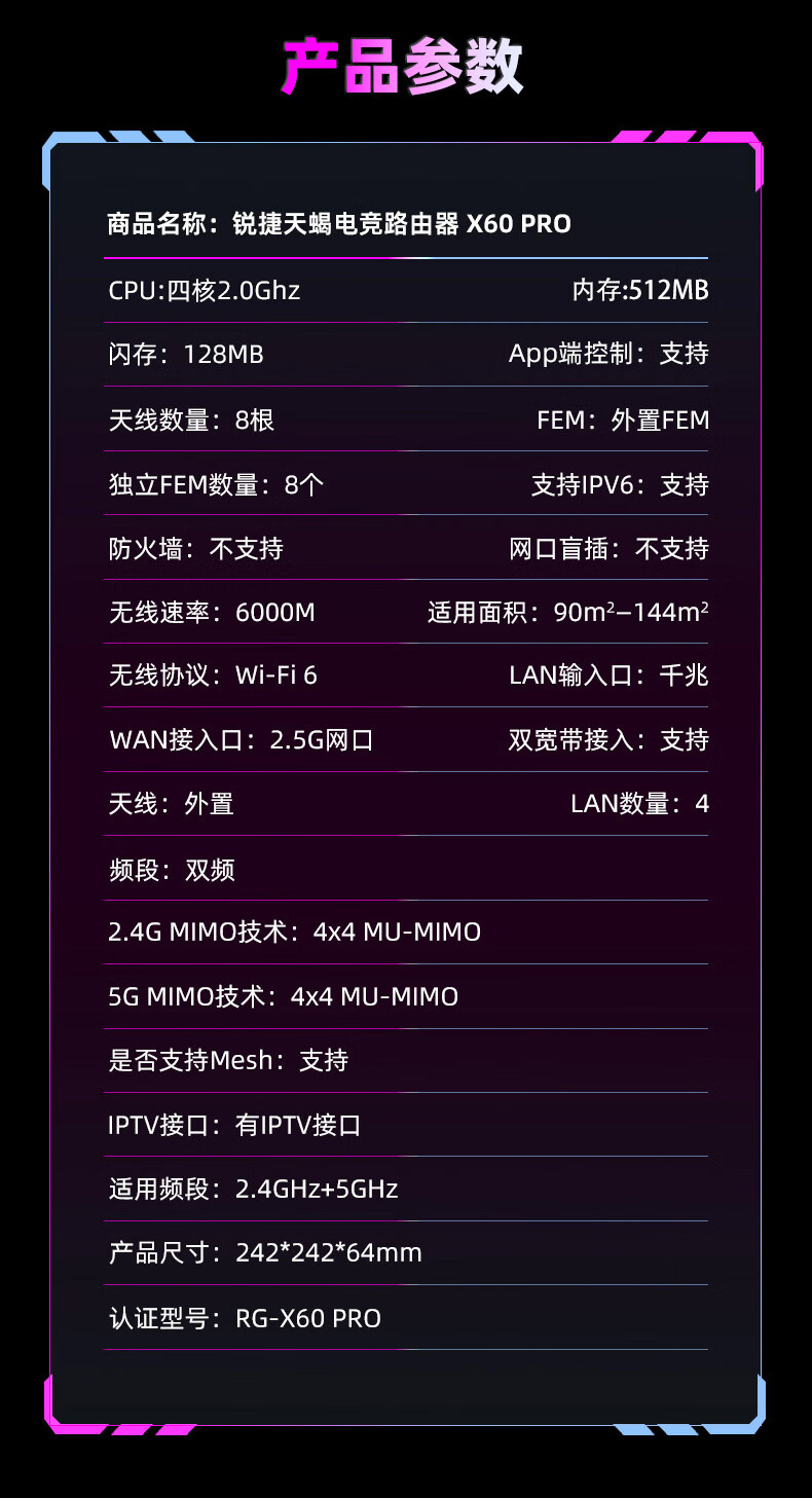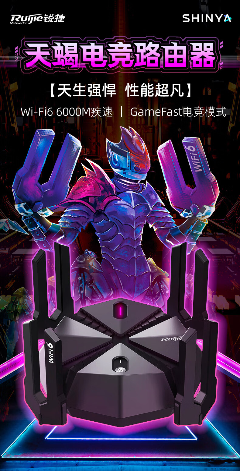 锐捷(Ruijie)星耀天蝎电竞路由器X60PRO 无线路由器千兆WiFi6穿墙王