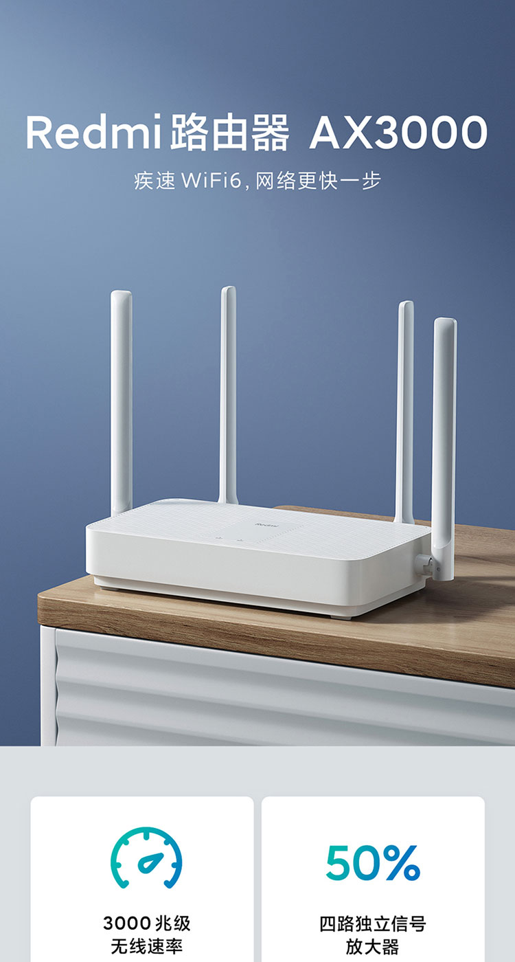 小米(MI)Redmi AX3000 路由器 5G双频WIFI6 新一代高通芯片 3000M无线速率