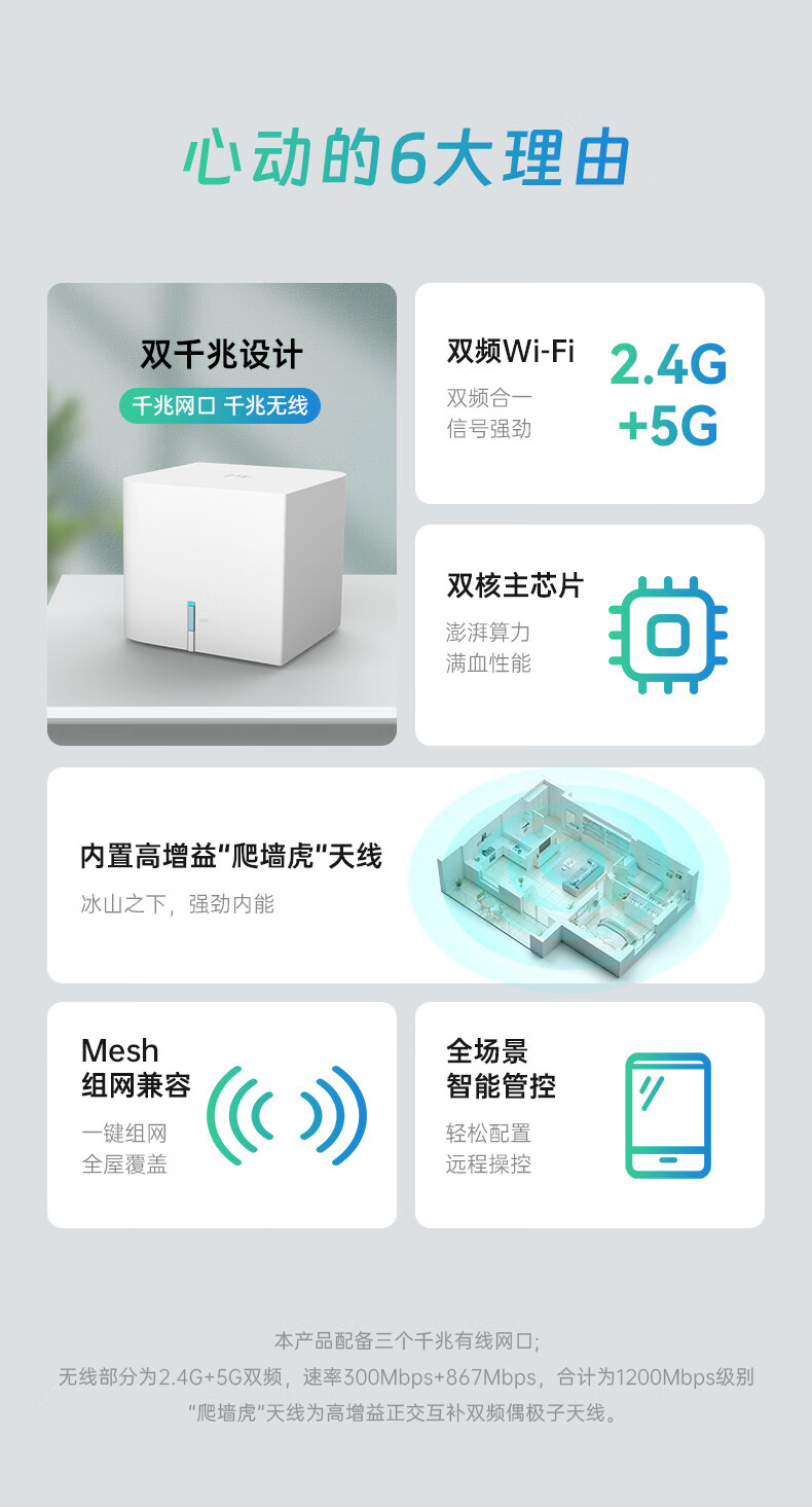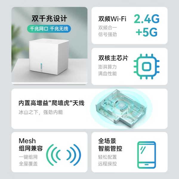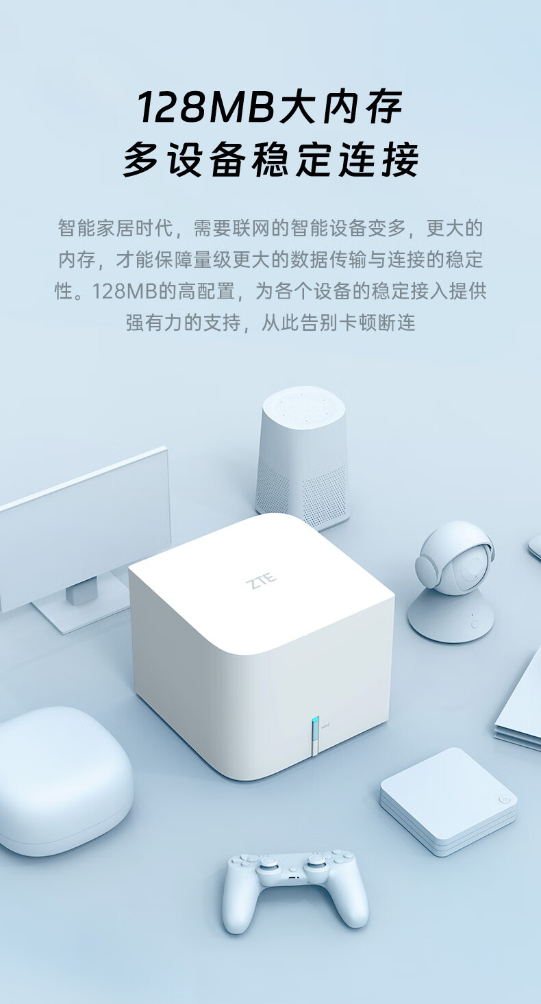 中兴(ZTE) 小方糖 AC1200 5G双频千兆智能无线路由器 一键mesh Z506智能wifi