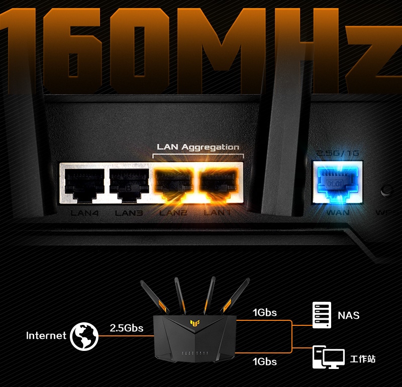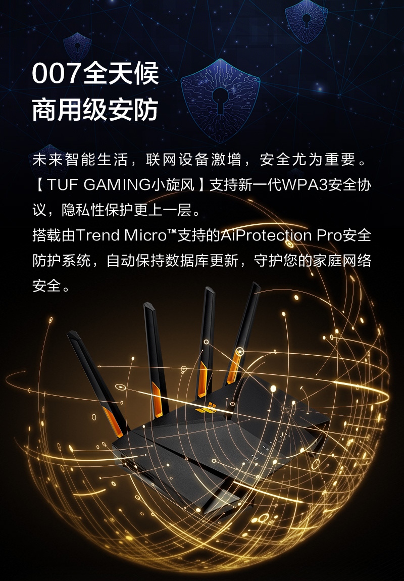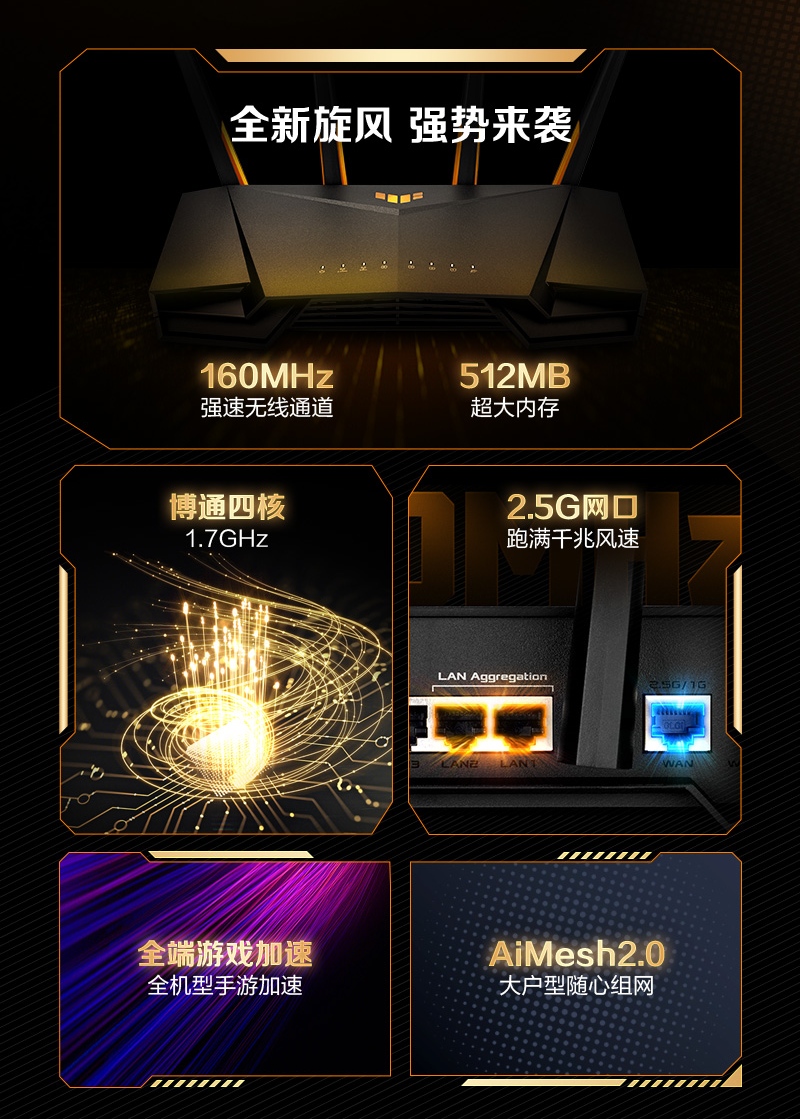 华硕(ASUS)TUF GAMING小旋风全千兆WiFi6电竞路由器/路由器千兆2.5G路由/四核1.7G/无线路由/游戏加速