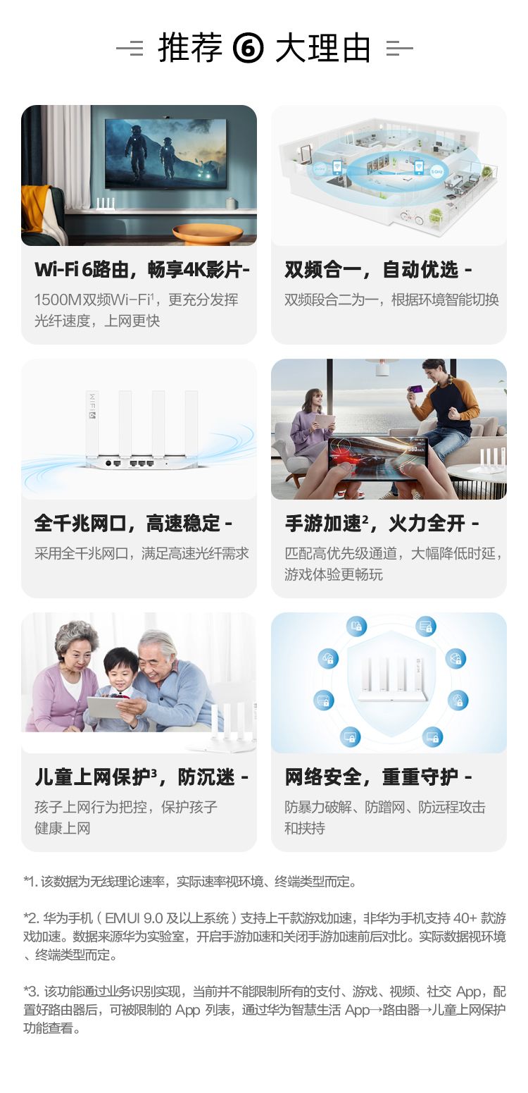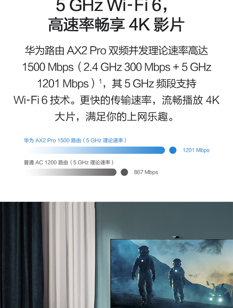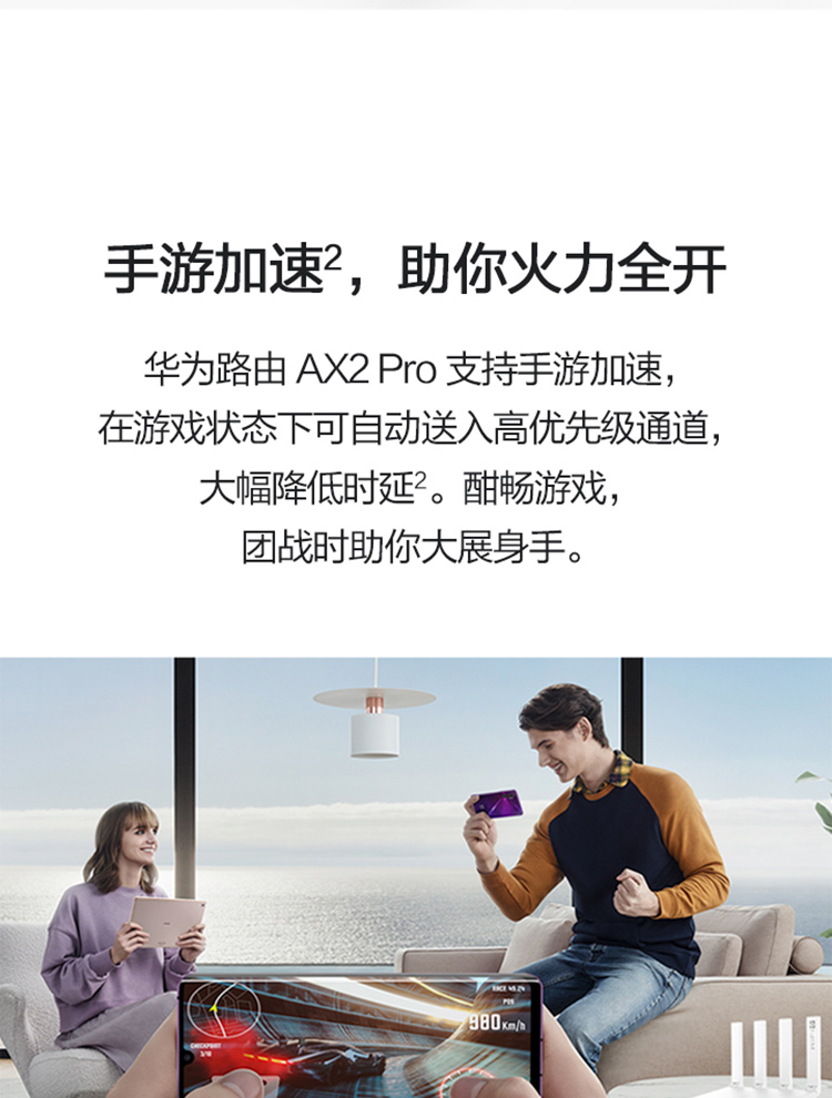 华为(HUAWEI)路由器AX2 Pro Wi-Fi6双千兆无线路由器 5G双频 畅享4K影片 提供手游加速