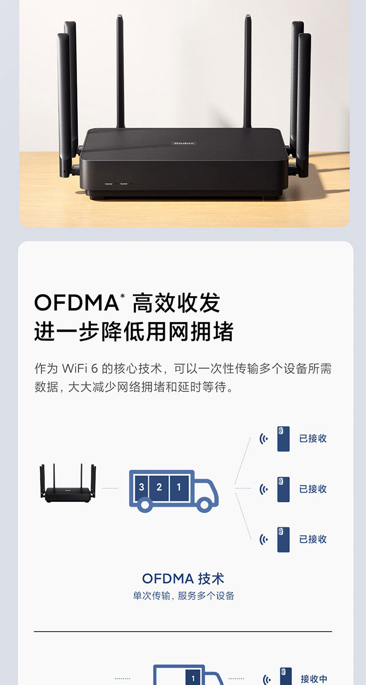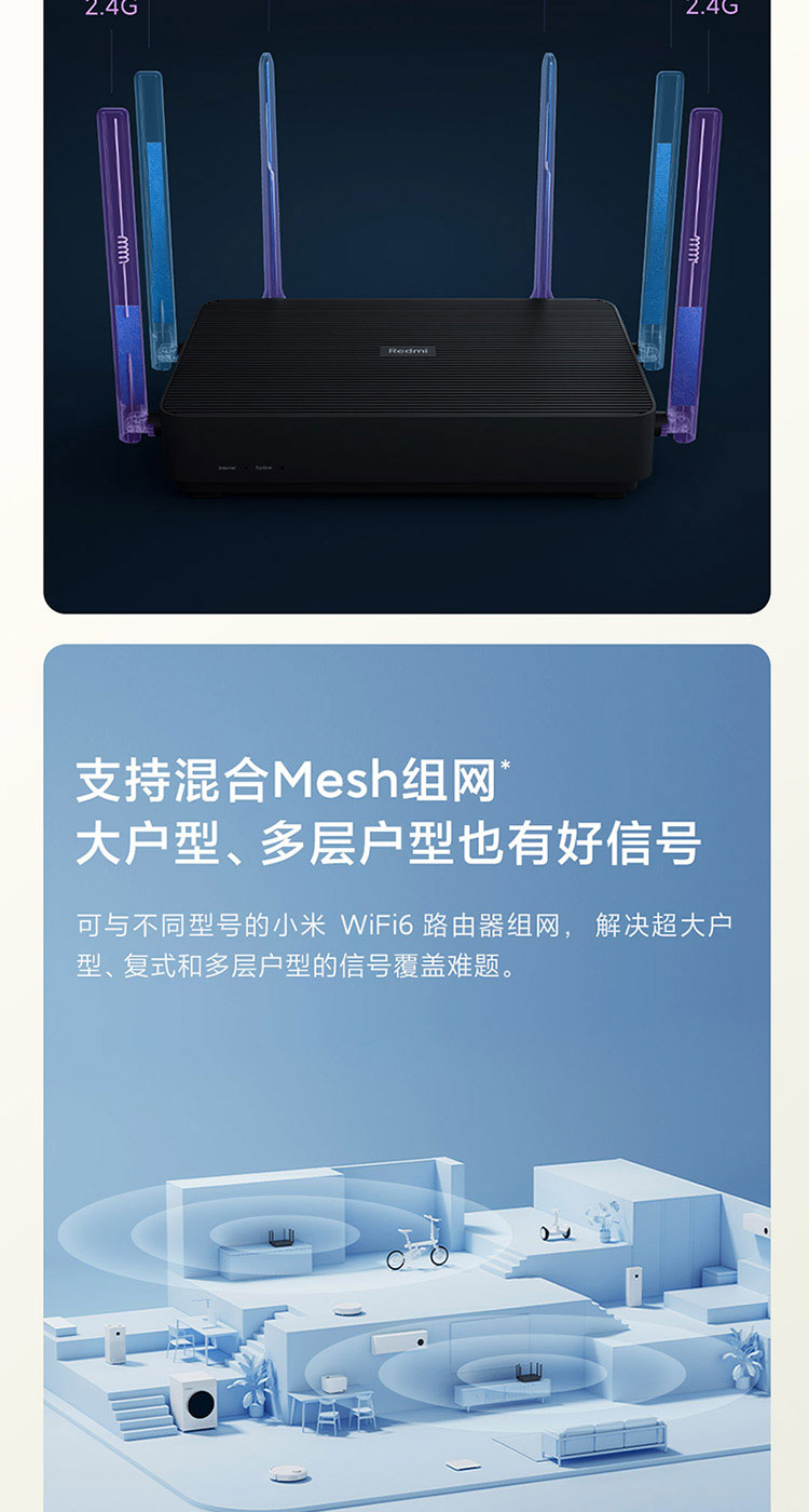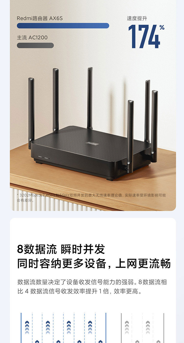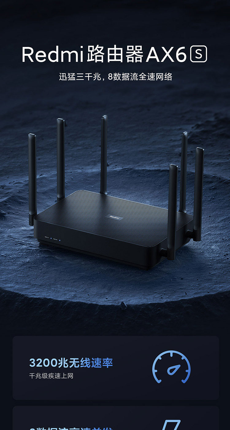 小米(MI)Redmi AX6S路由器 小米路由器 AX3200M无线速率 WIFI6 8数据流
