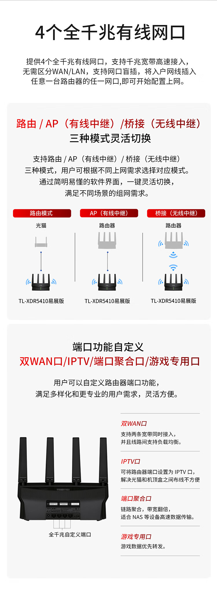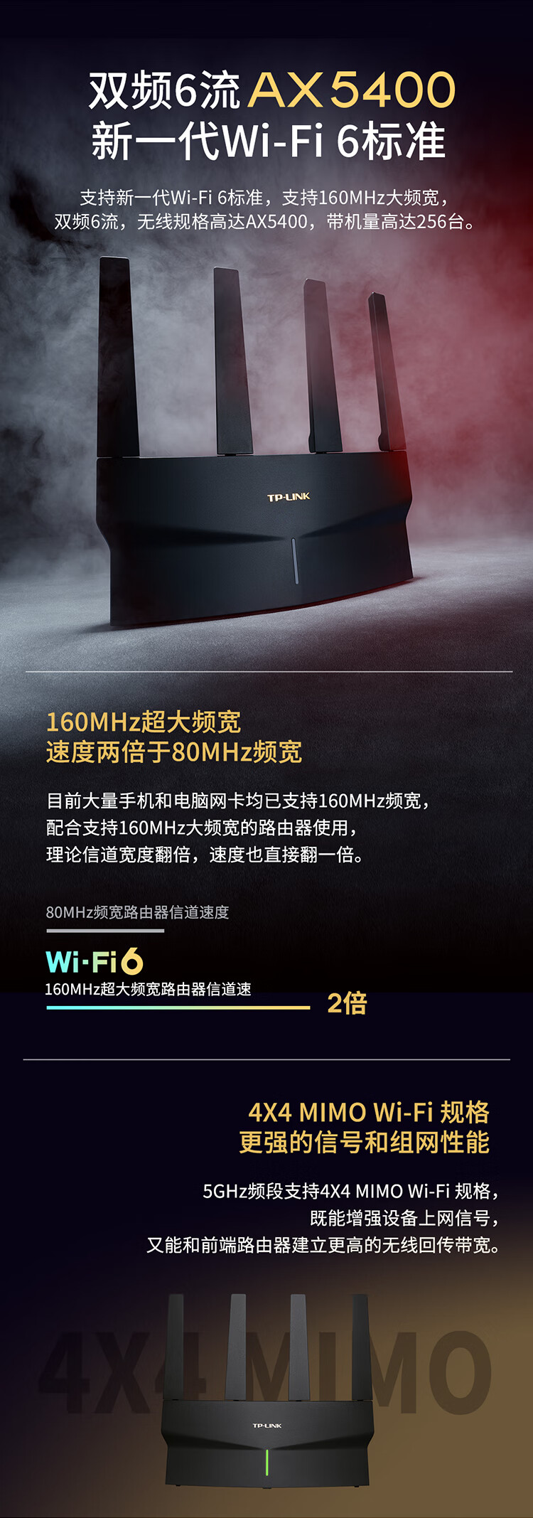 TP-LINK AX5400千兆无线路由器 WiFi6 5G双频高速网络 Mesh路由 游戏路由 智能家用穿墙