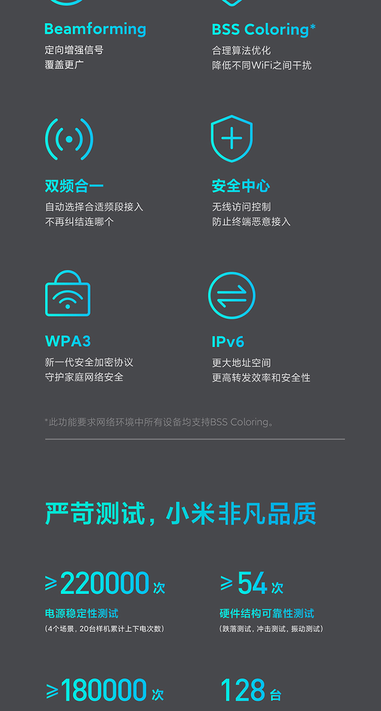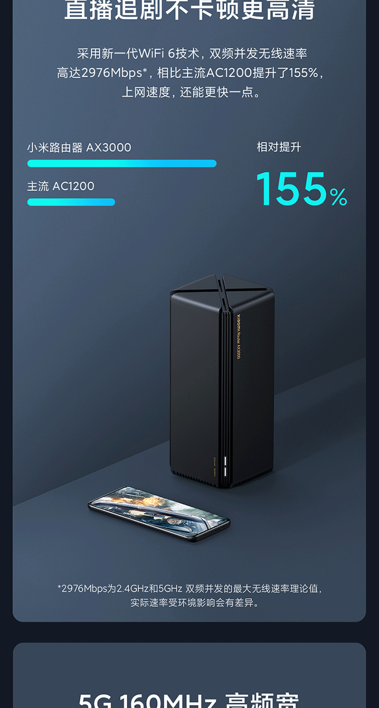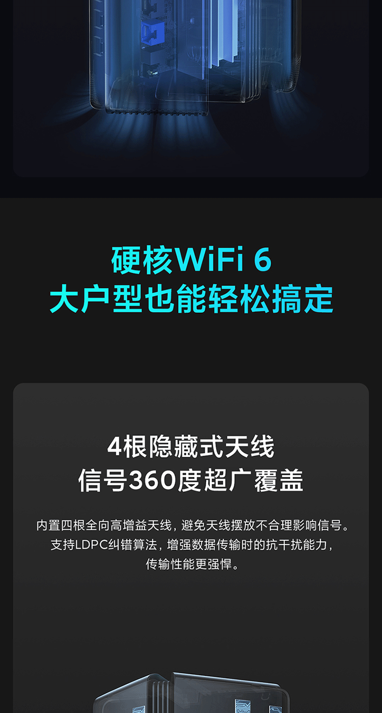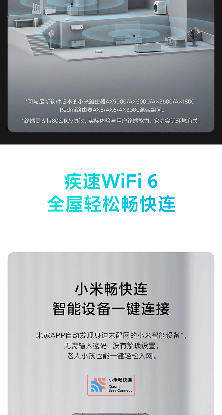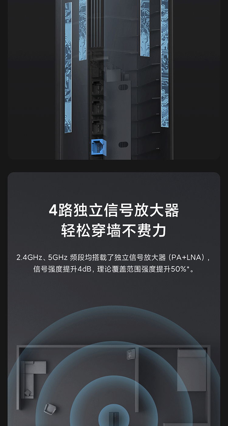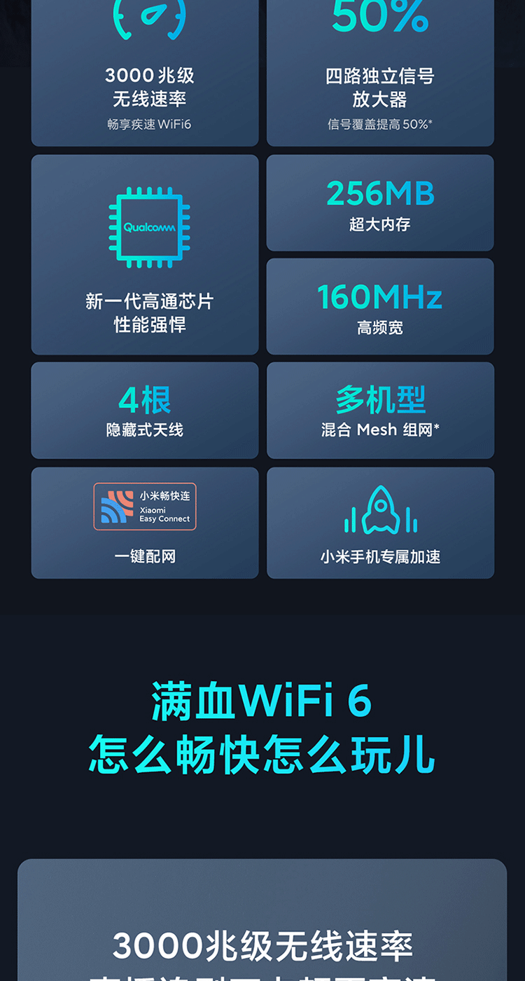 小米(MI)路由器AX3000 5G双频WIFI6 3000M无线速率 内置4路独立信号放大器 256MB超大内存