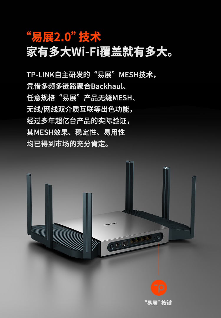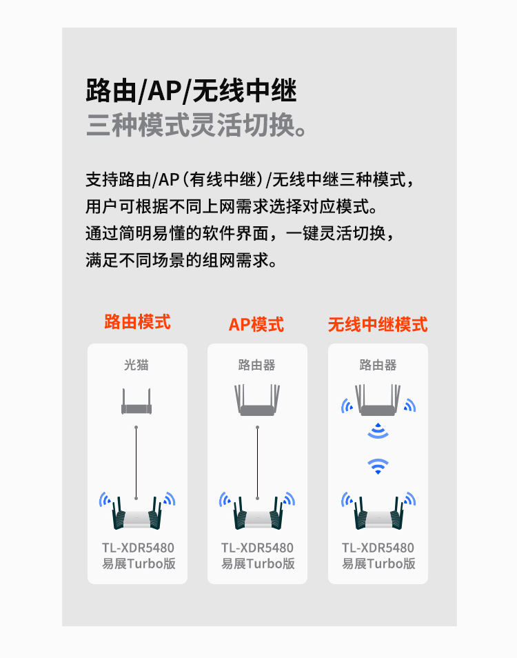 TP-LINK【飞流系列】 AX5400双频千兆无线路由器 WiFi6游戏路由 Mesh XDR5480易展Turbo版