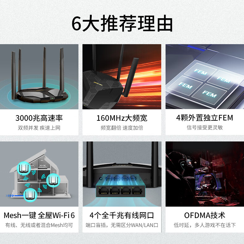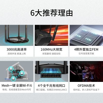 水星(MERCURY) WiFi6 AX3000全千兆无线路由器 5G双频高速wifi穿墙