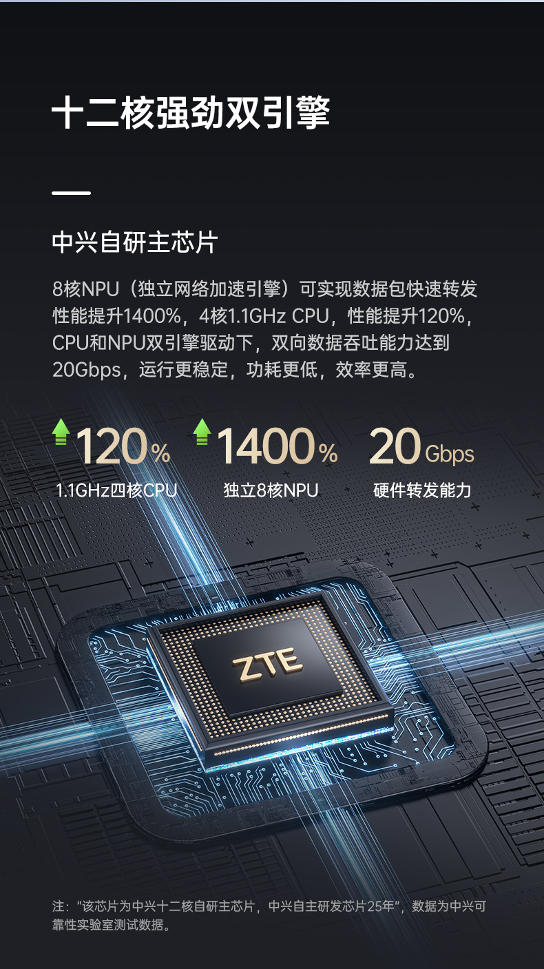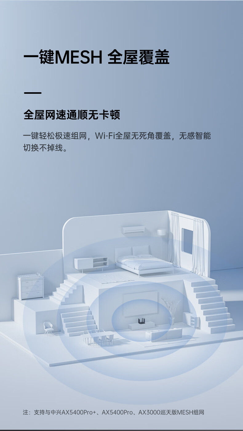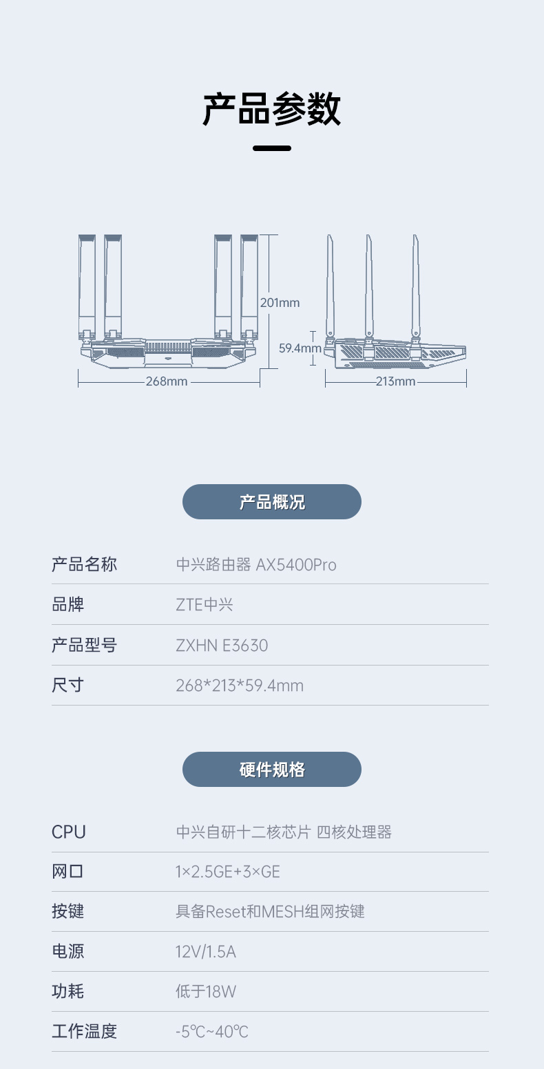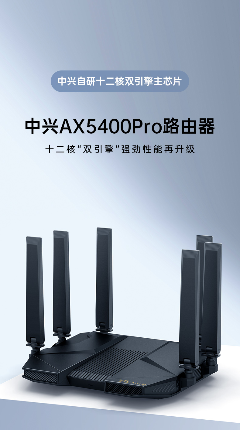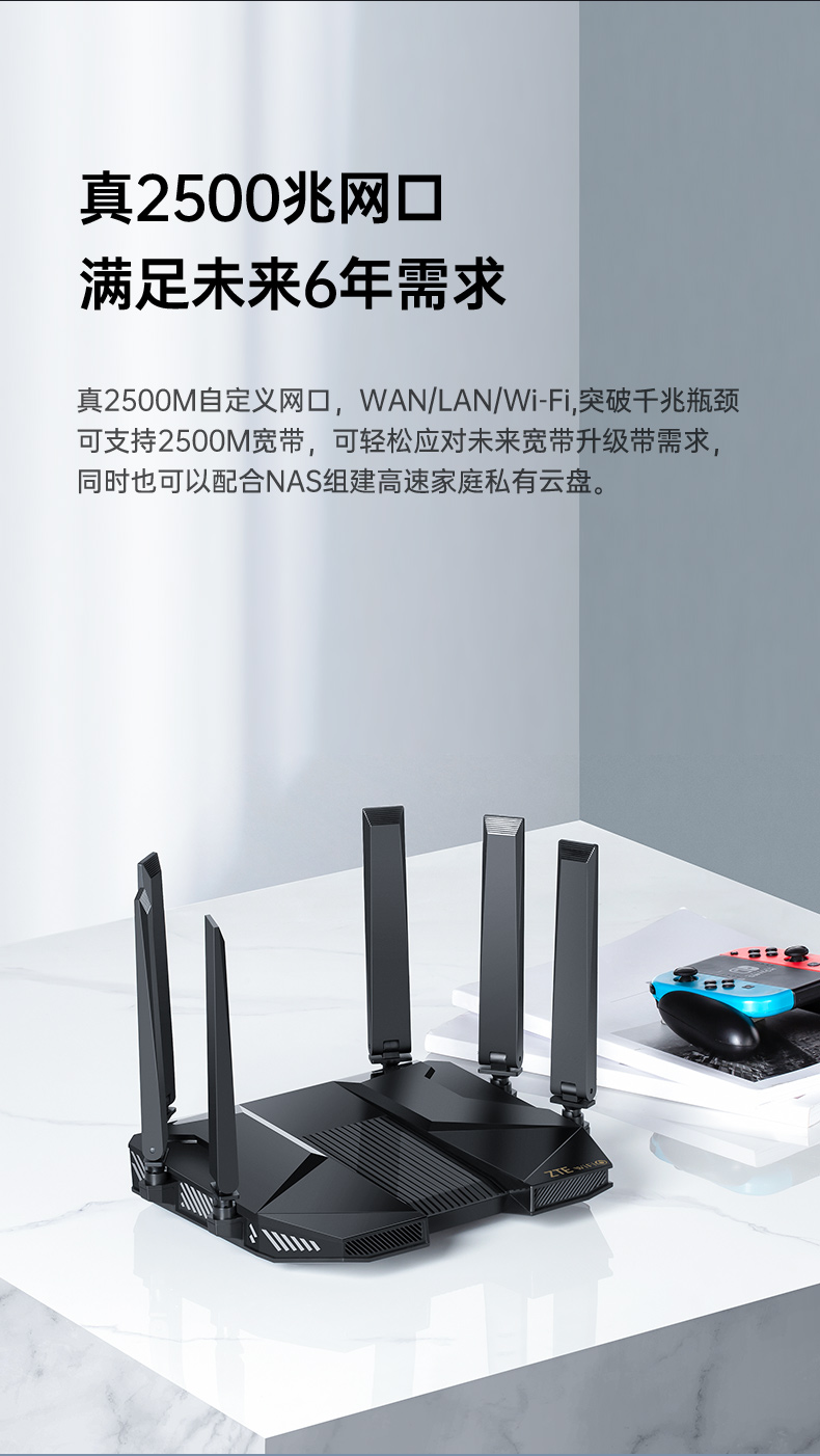 中兴(ZTE) AX5400Pro双频千兆 自研12核主芯片 2.5G端口mesh无线路由器 wifi6