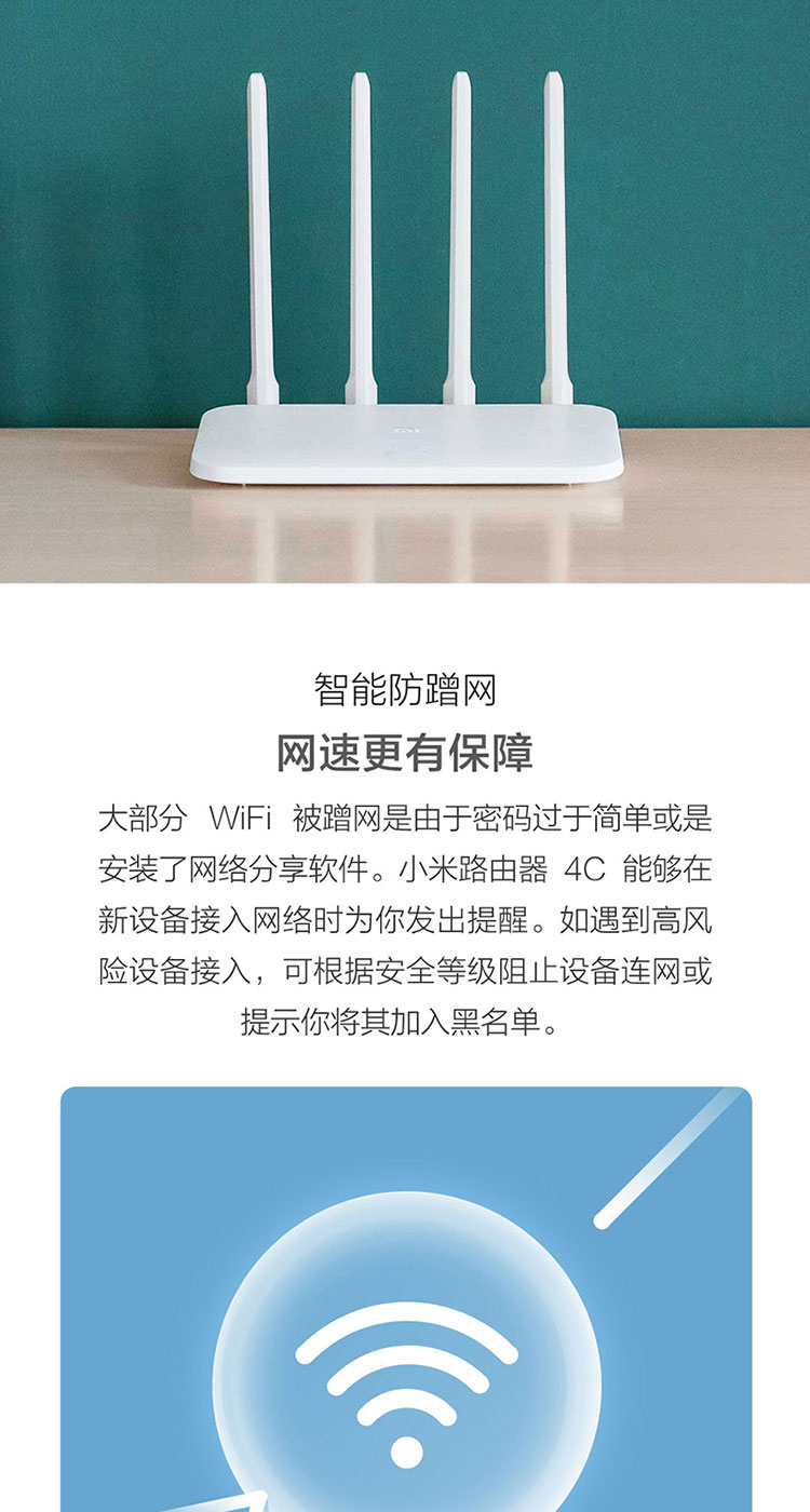 小米(MI)路由器 4C 300M无线速率 智能家用路由器 安全稳定 WiFi无线穿墙