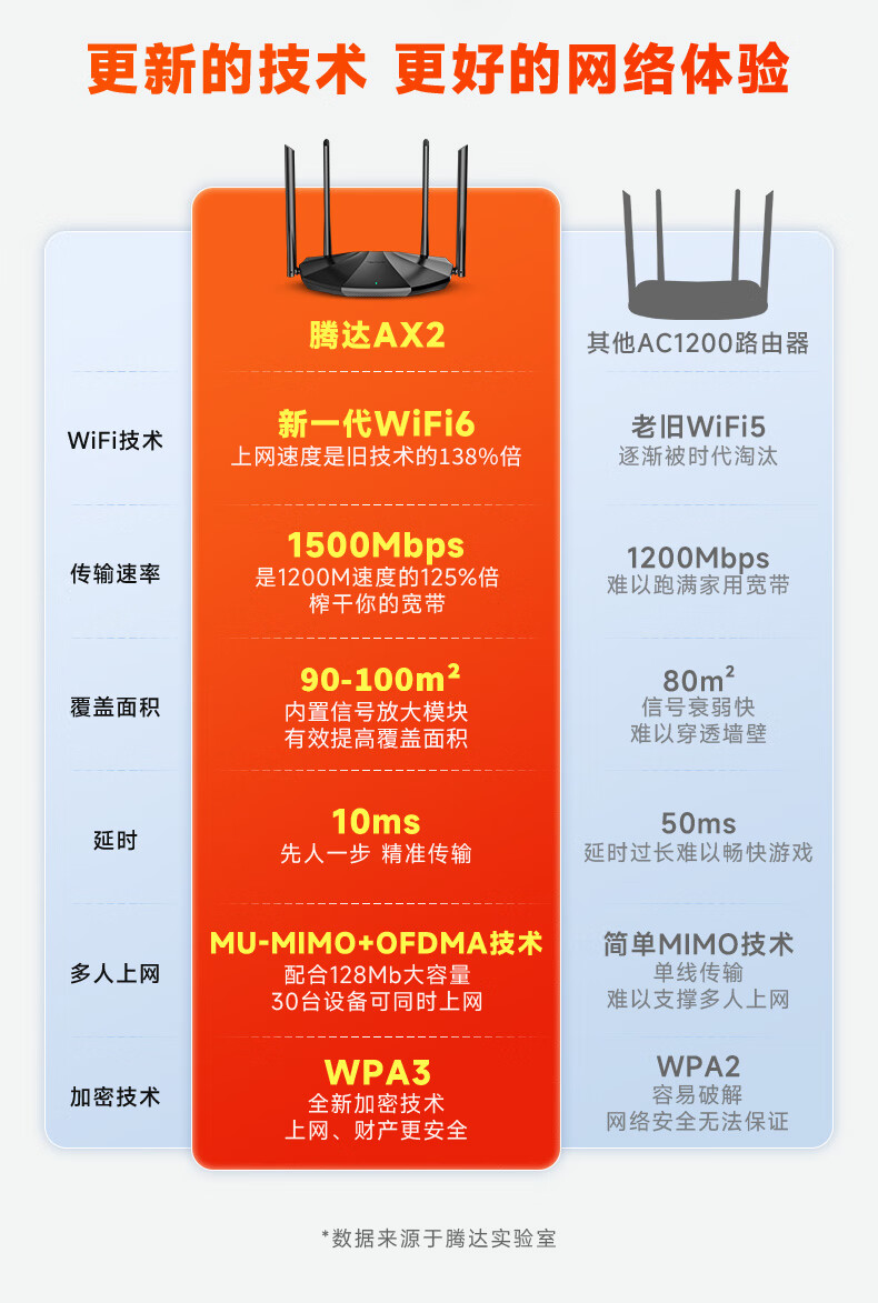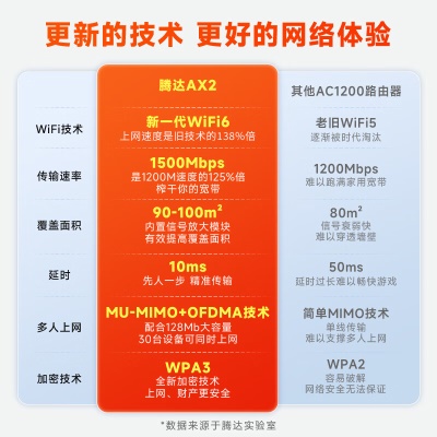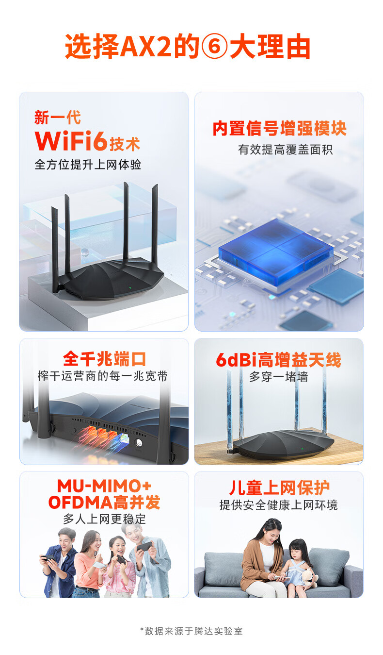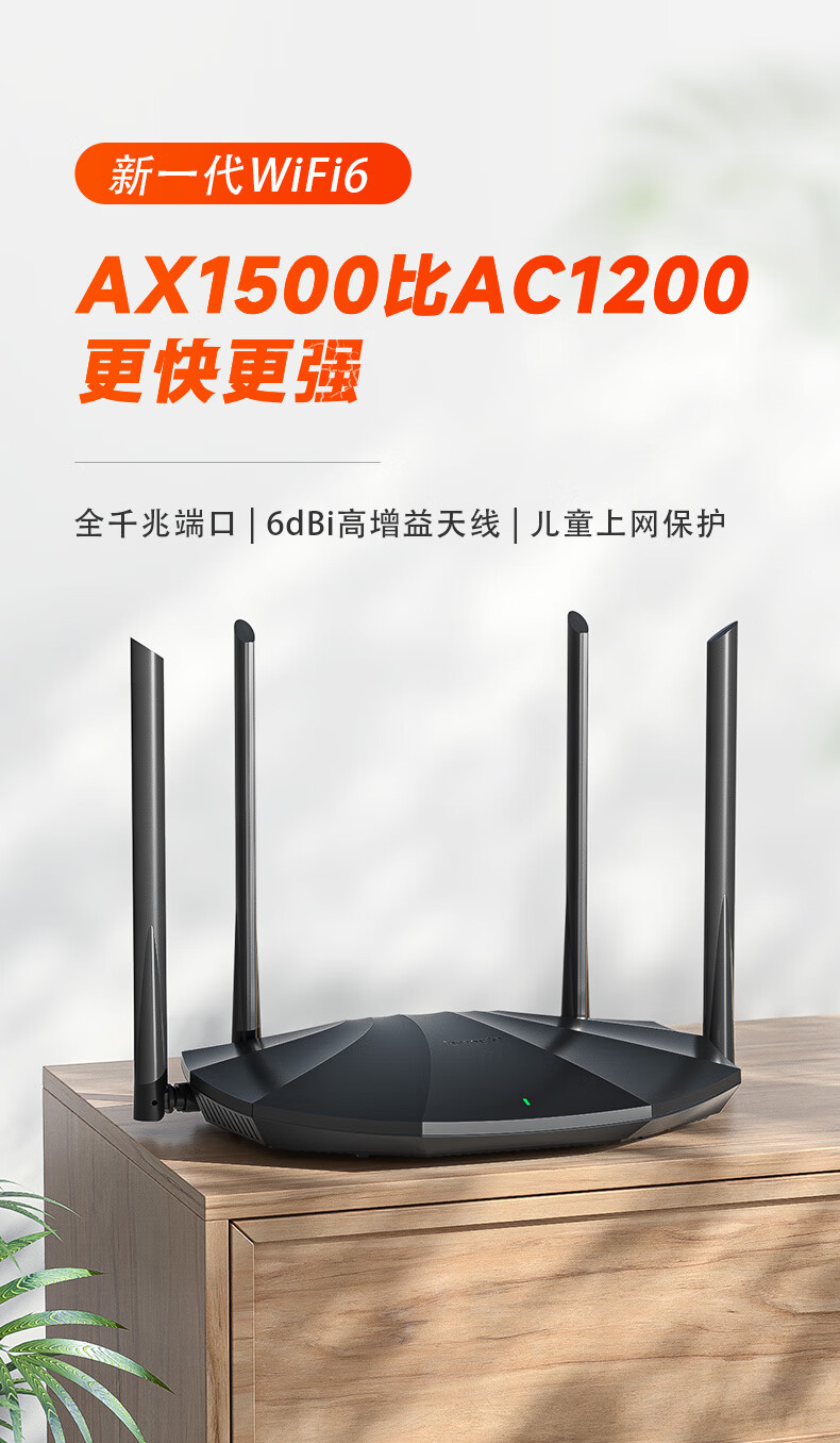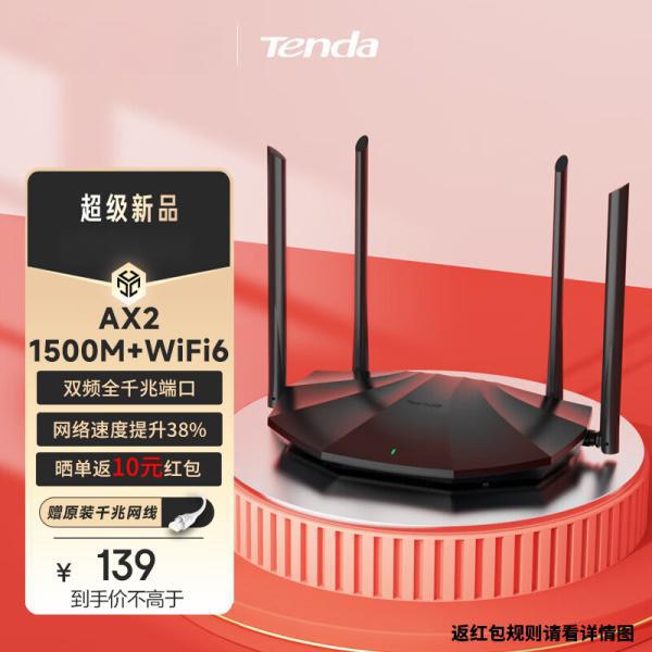 腾达(Tenda)AX2 AX1500 WiFi6千兆无线路由器 5G双频 智能家用穿墙高速路由 IPv6