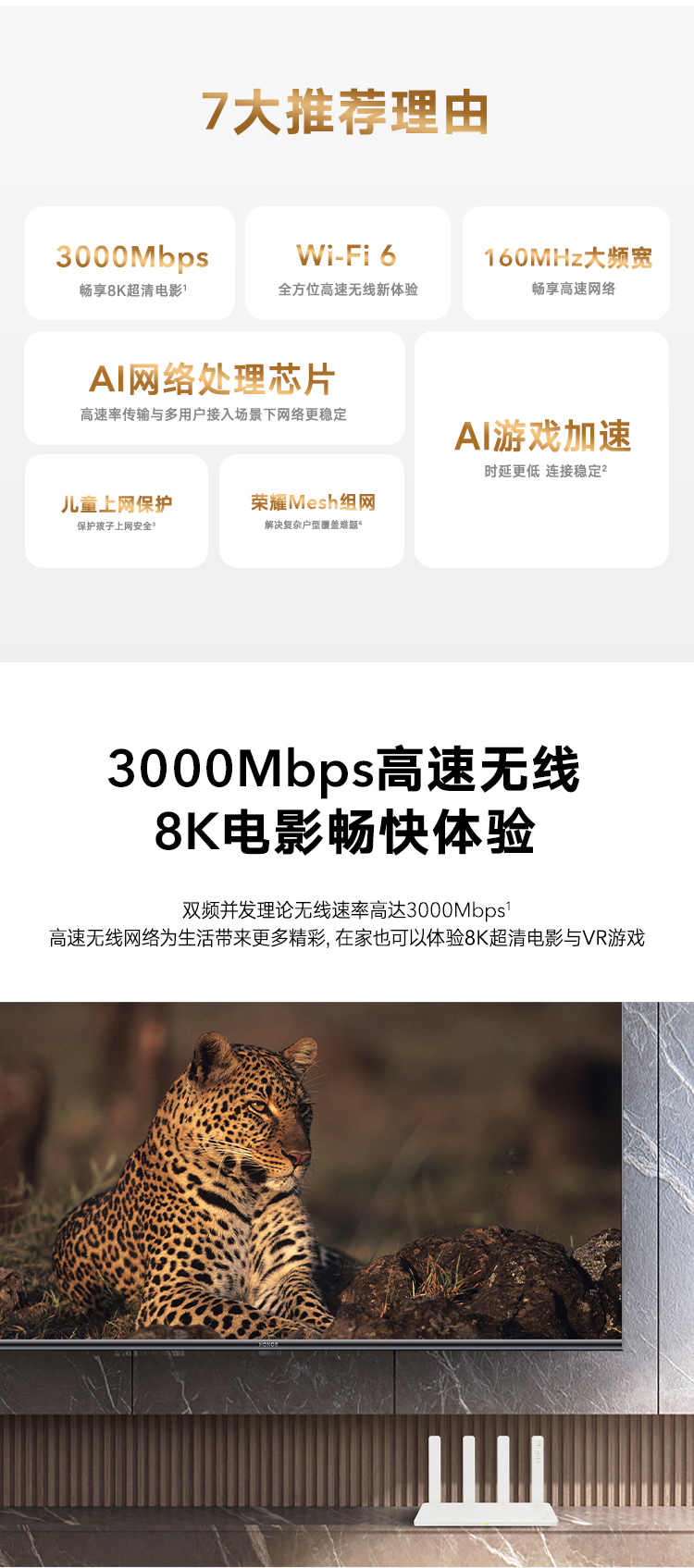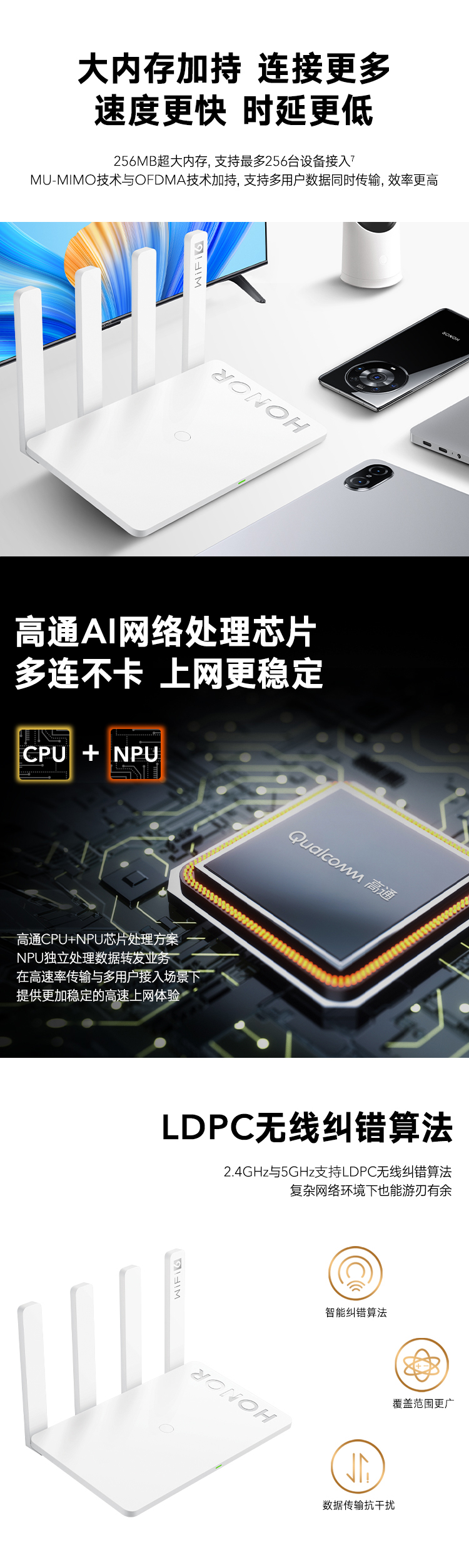 荣耀(HONOR)路由4 WiFi6千兆路由器 ax3000 专属网络芯片 网课游戏加速 多连不卡家用穿墙