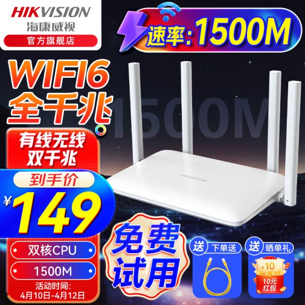 海康威视(HIKVISION) 路由器WiFi6家用无线双频全千兆1500M穿墙王5G信号增强放大器