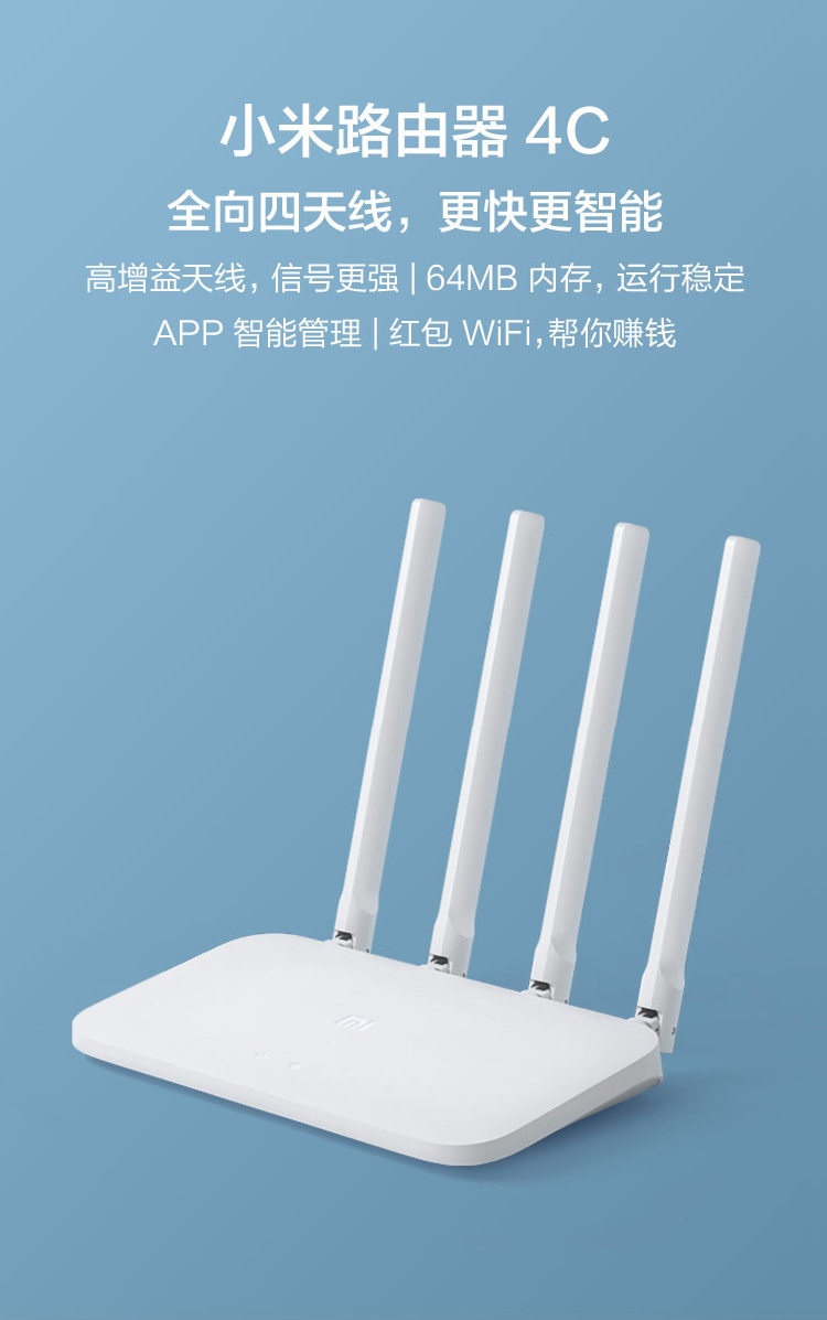 小米(MI) 路由器4C 无线wifi智能路由器家用穿墙王高速覆盖广路由器宽带 小米路由器4C