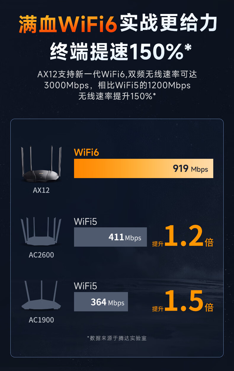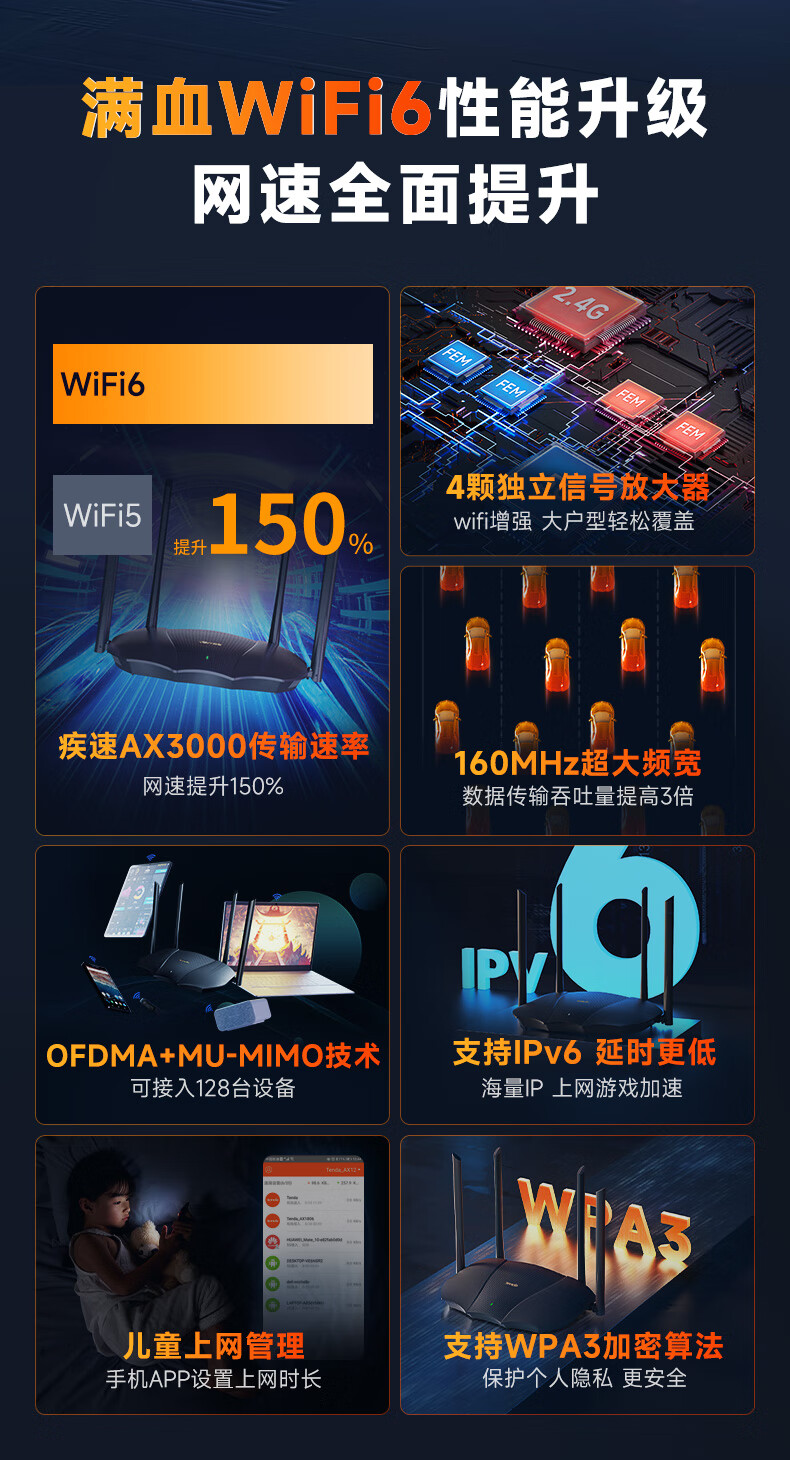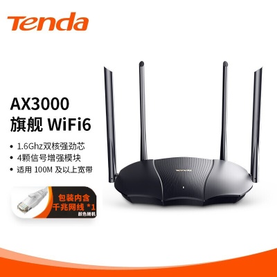 腾达(Tenda)AX3000 WiFi6千兆无线路由器 5G双频 3000M无线速率 家用穿墙 信号增强版