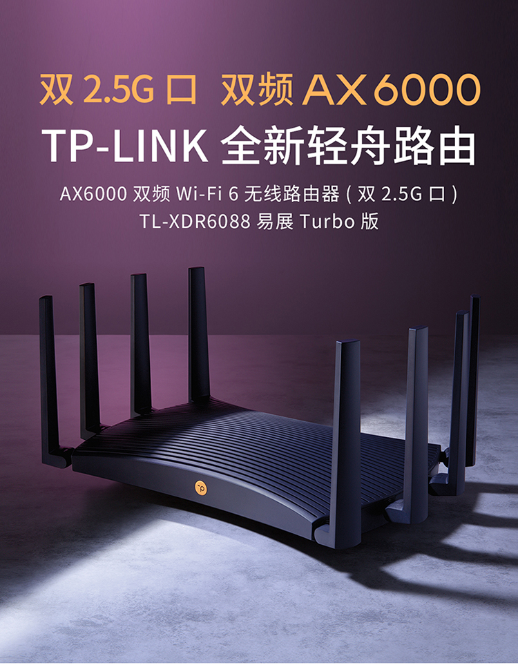 TP-LINK AX6000双频WiFi6千兆无线路由器 XDR6088易展Turbo版 双2.5G网口 电竞级游戏加速
