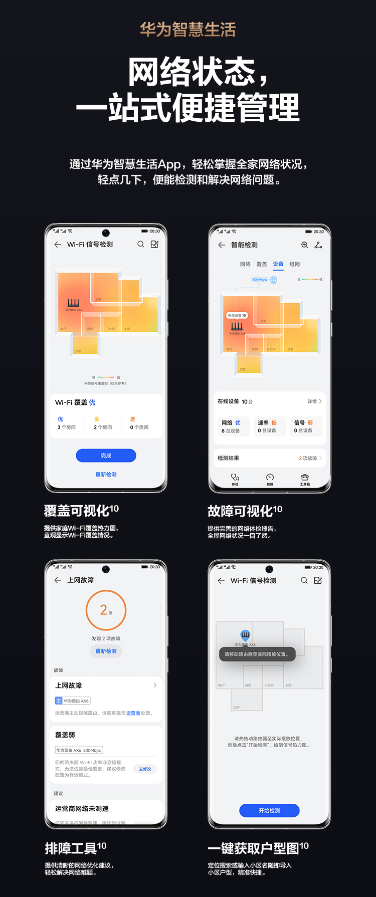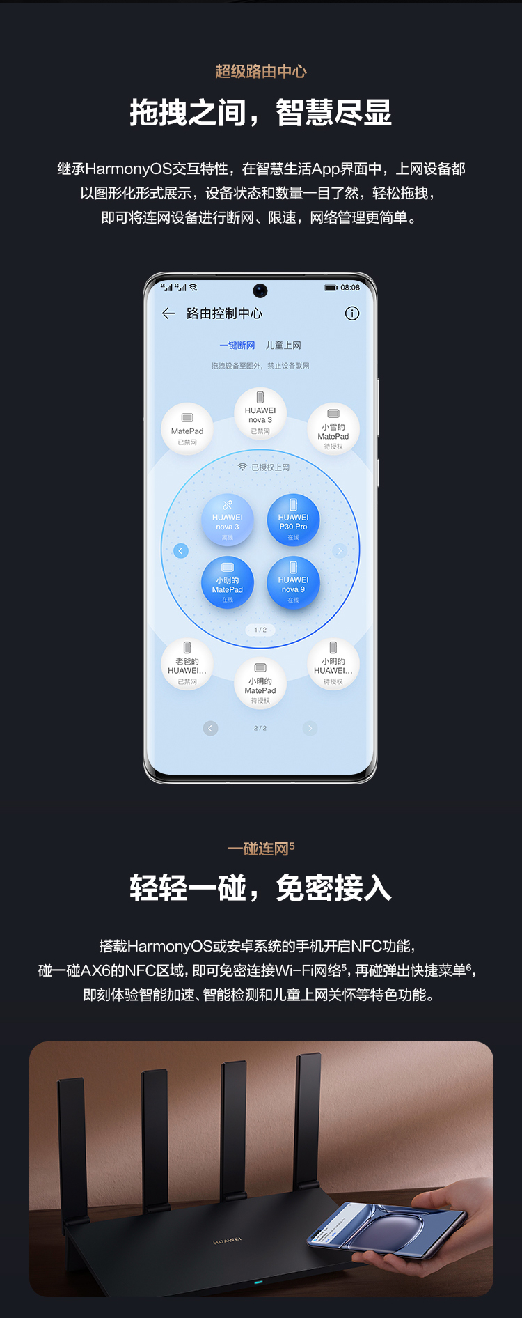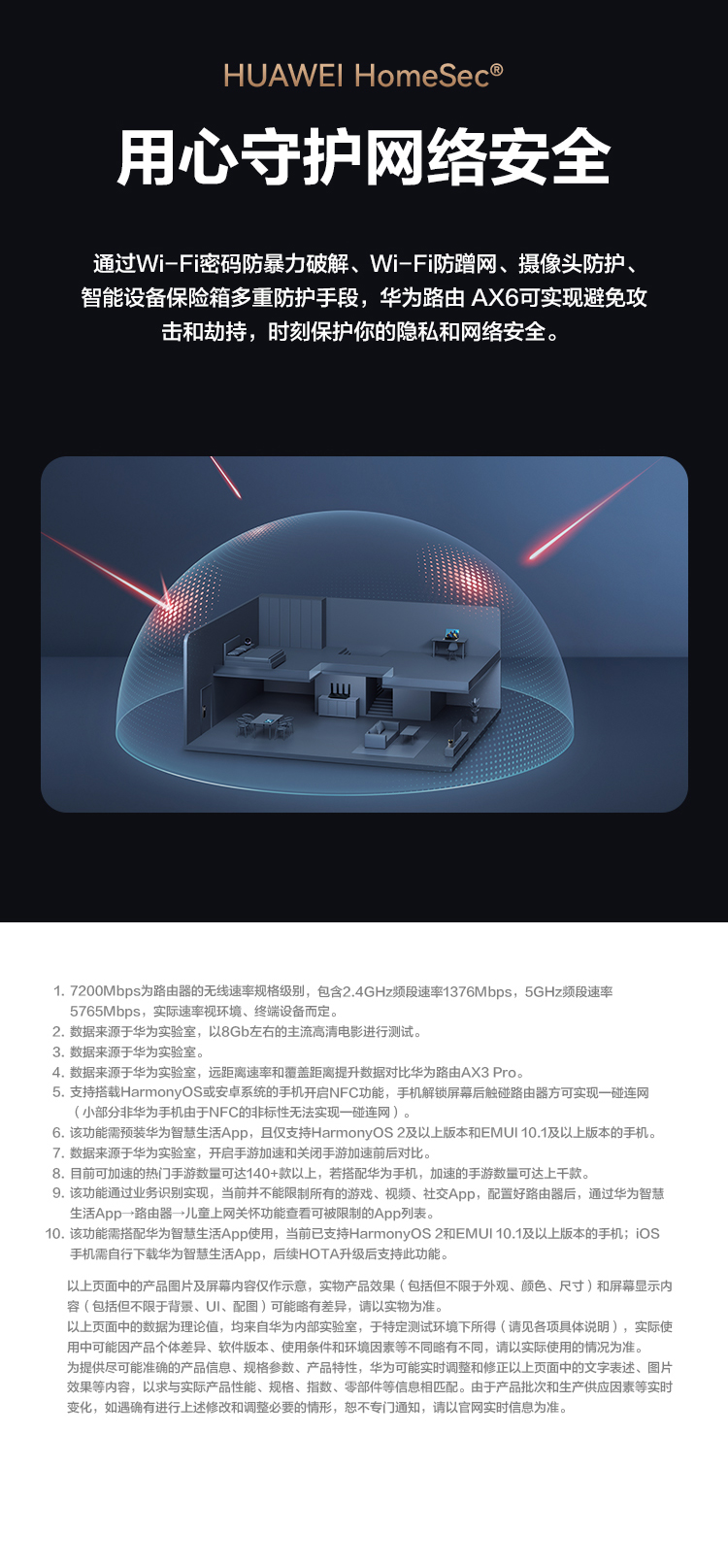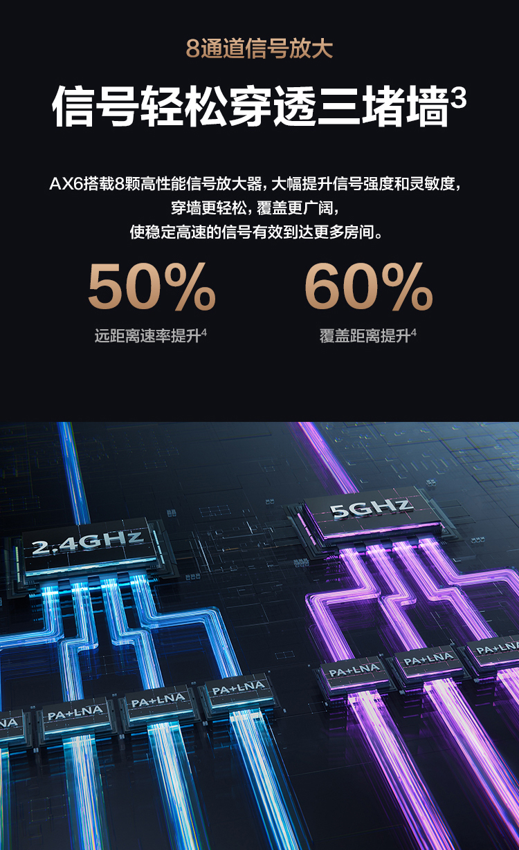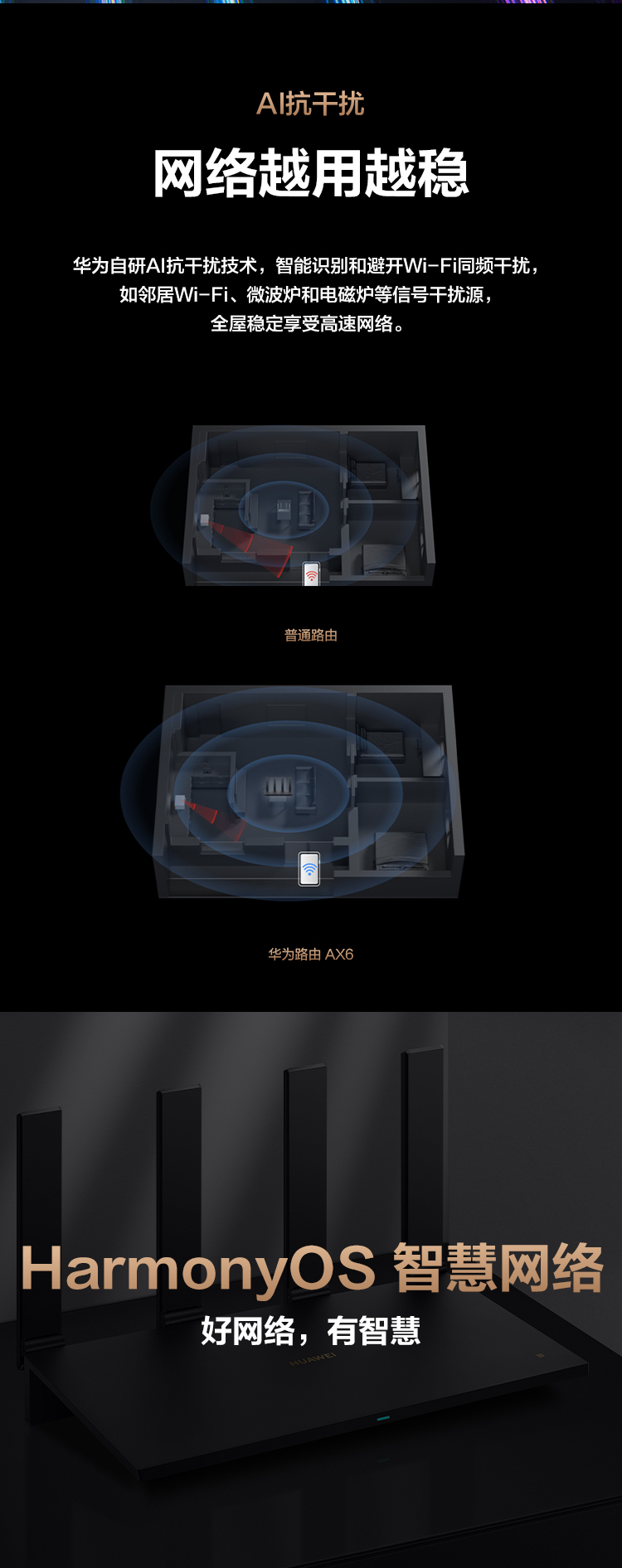 wifi6+华为路由器AX6千兆无线5G穿墙王全屋wifi信号放大器增强器家用电竞漏油器 顶配旗舰单品AX6黑色【wifi6+7200M】