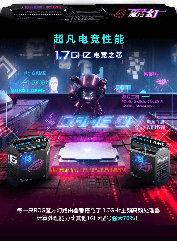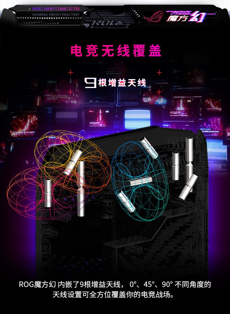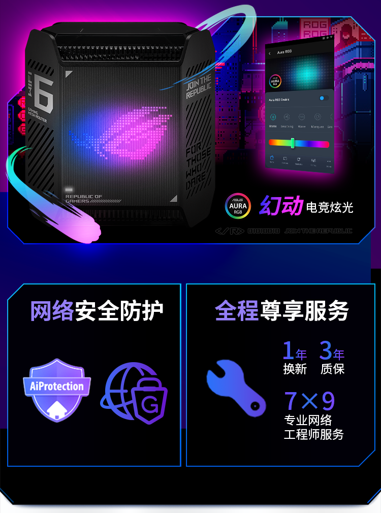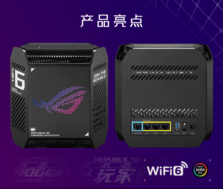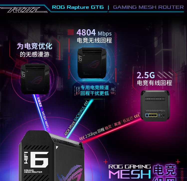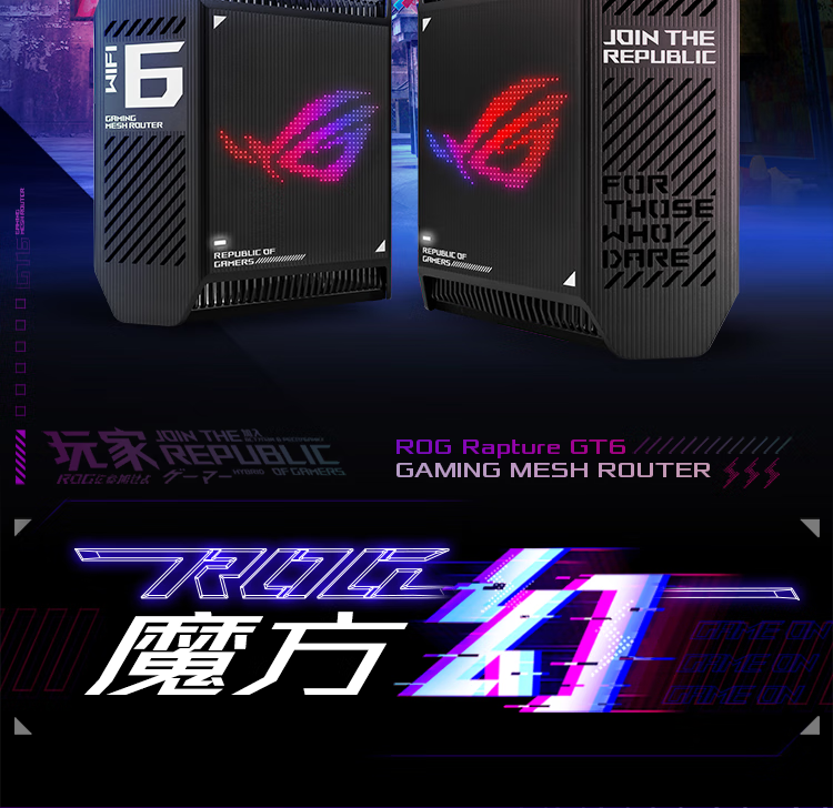 华硕(ASUS)ROG魔方幻三频万兆电竞分布式路由器全屋覆盖WiFi6千兆无线MESH路由器黑色单只2.5G口