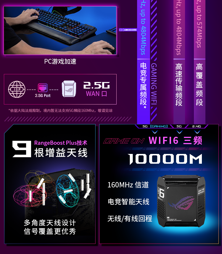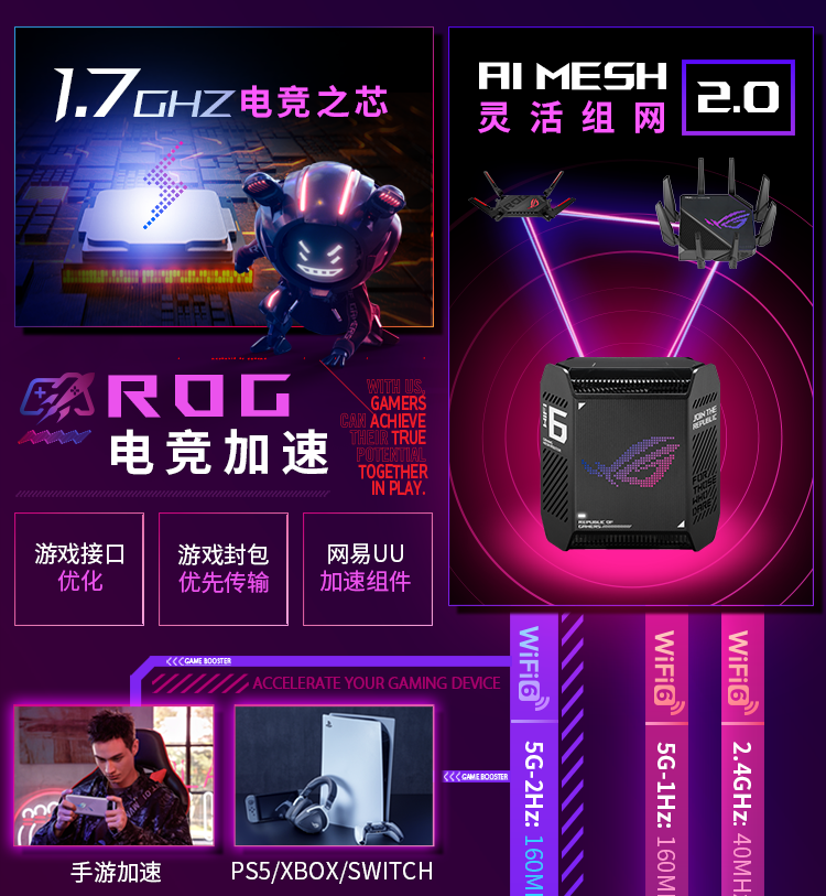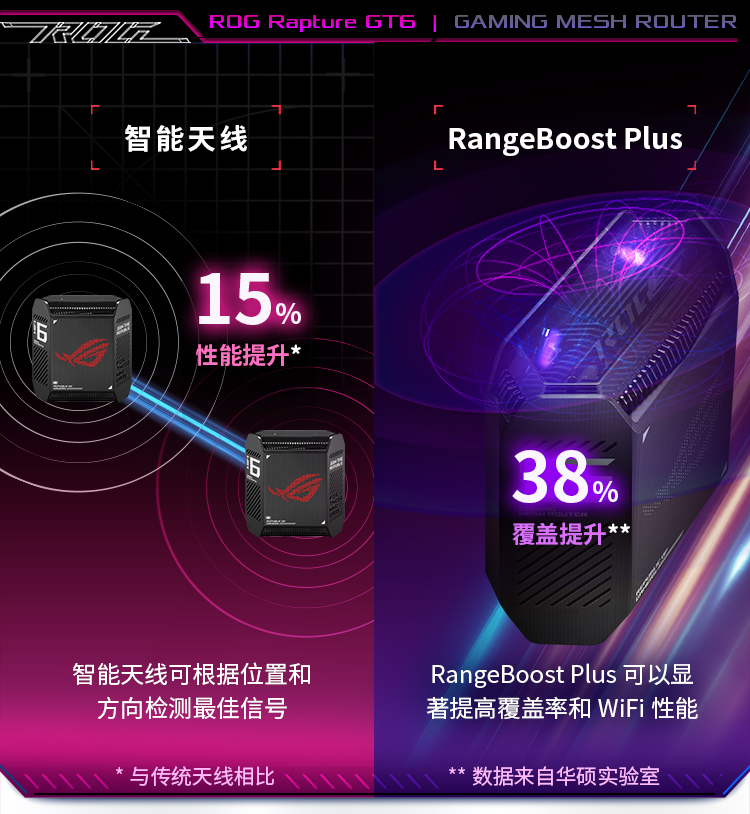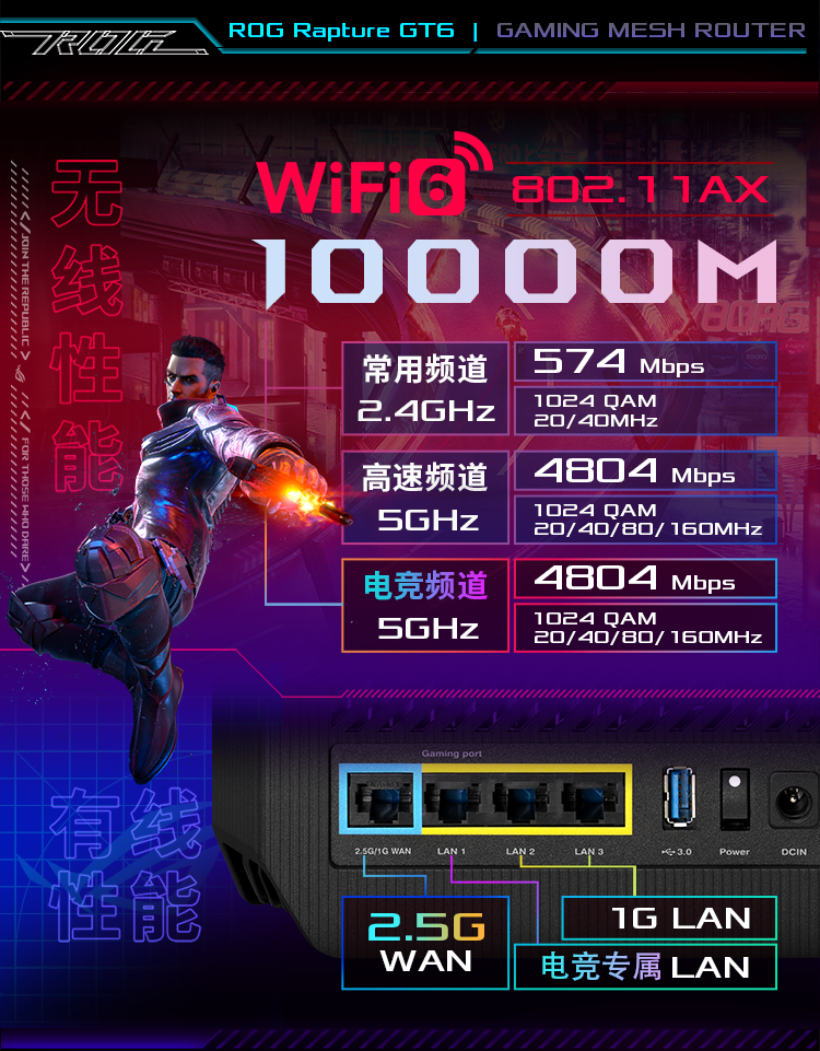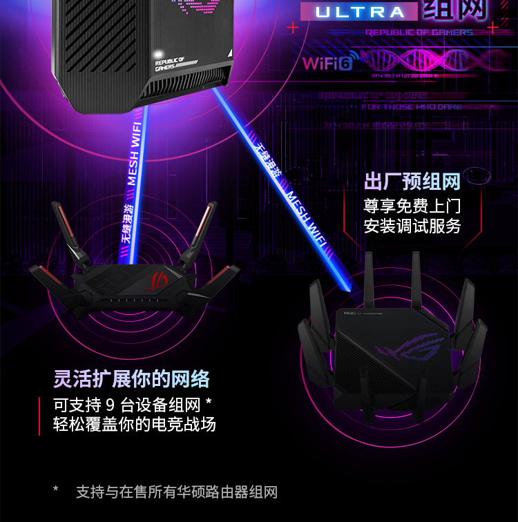 华硕(ASUS)ROG魔方幻三频万兆电竞分布式路由器全屋覆盖WiFi6千兆无线MESH路由器黑色单只2.5G口