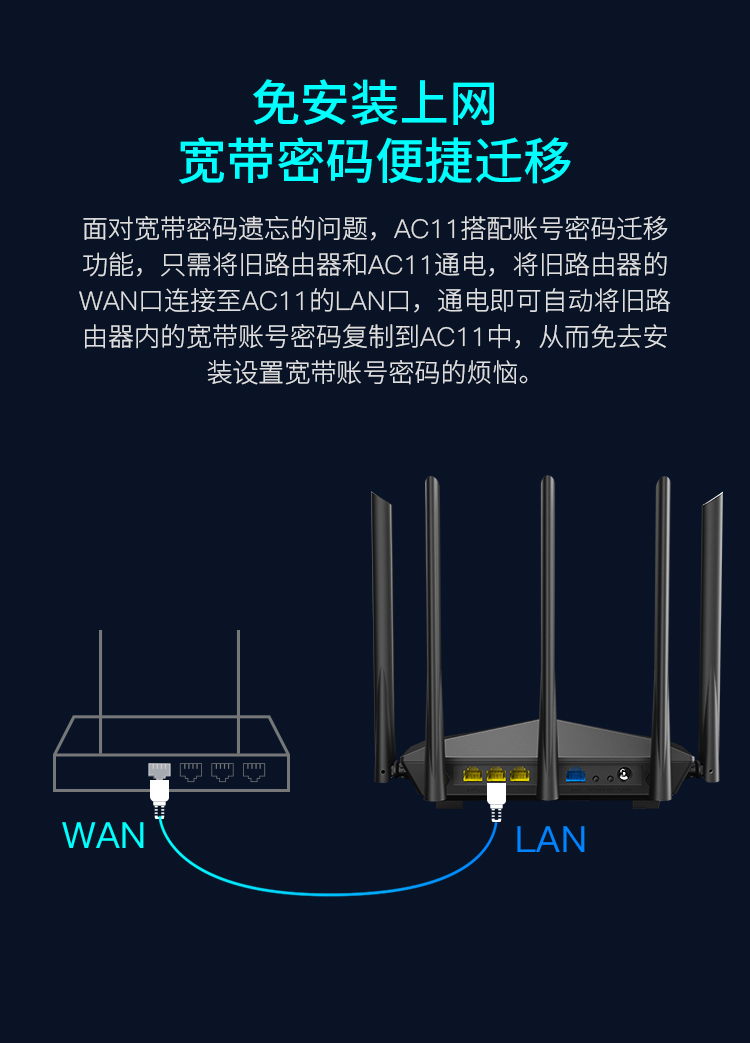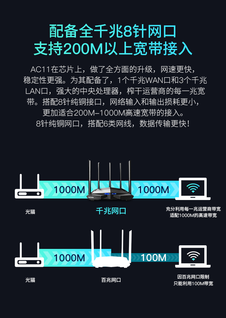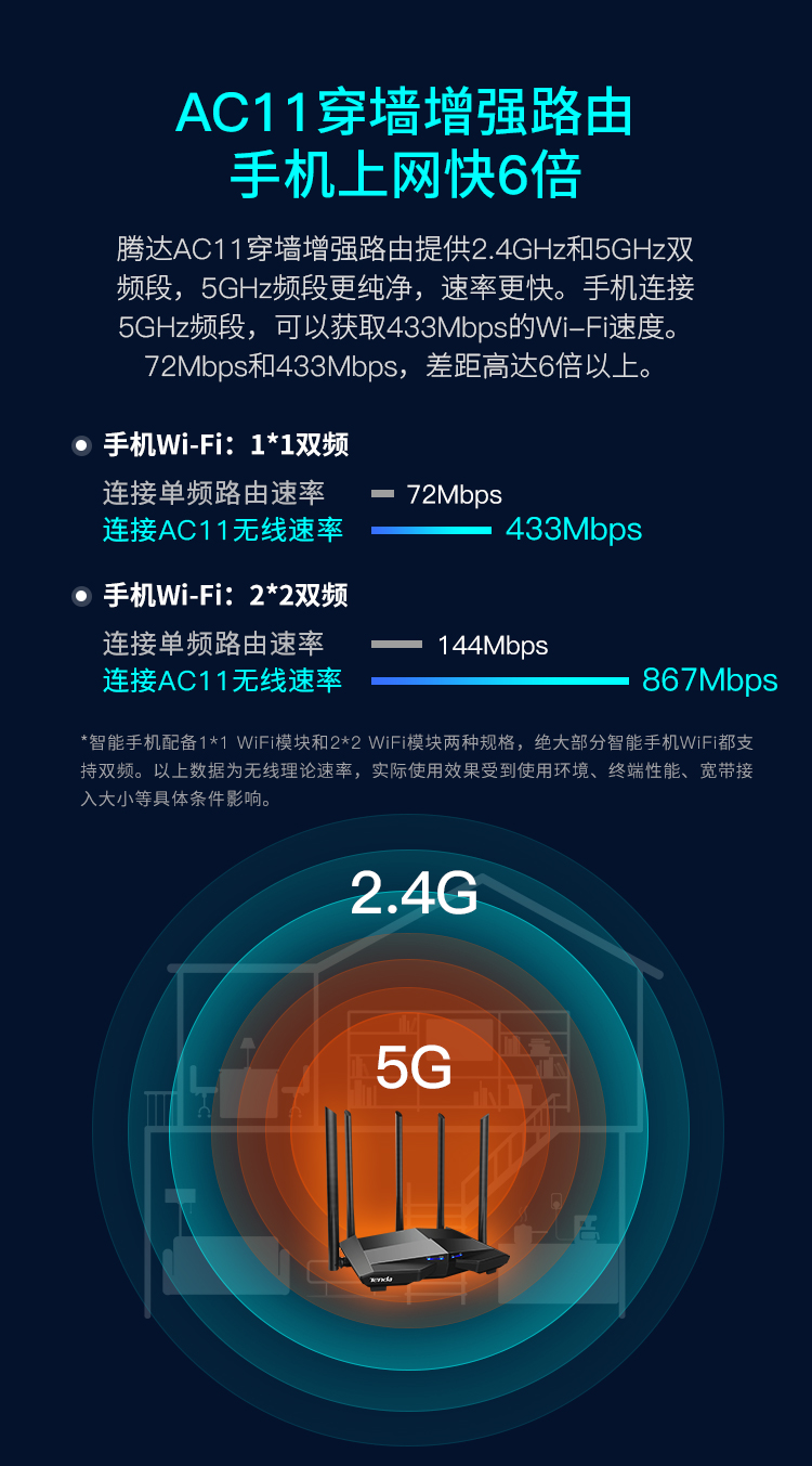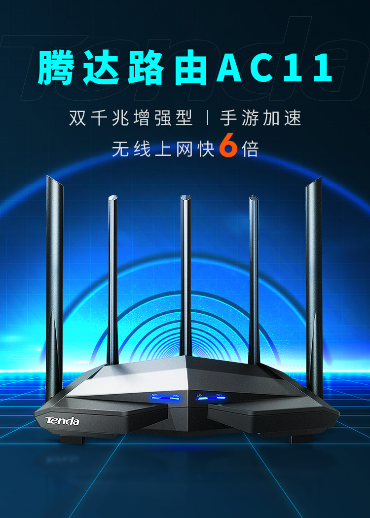 腾达(Tenda)路由器千兆 AC1200M家用无线 5G双频Wi-Fi AC11双千兆 穿墙 增强型路由