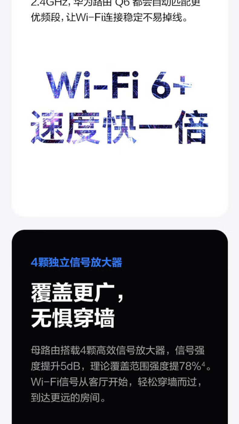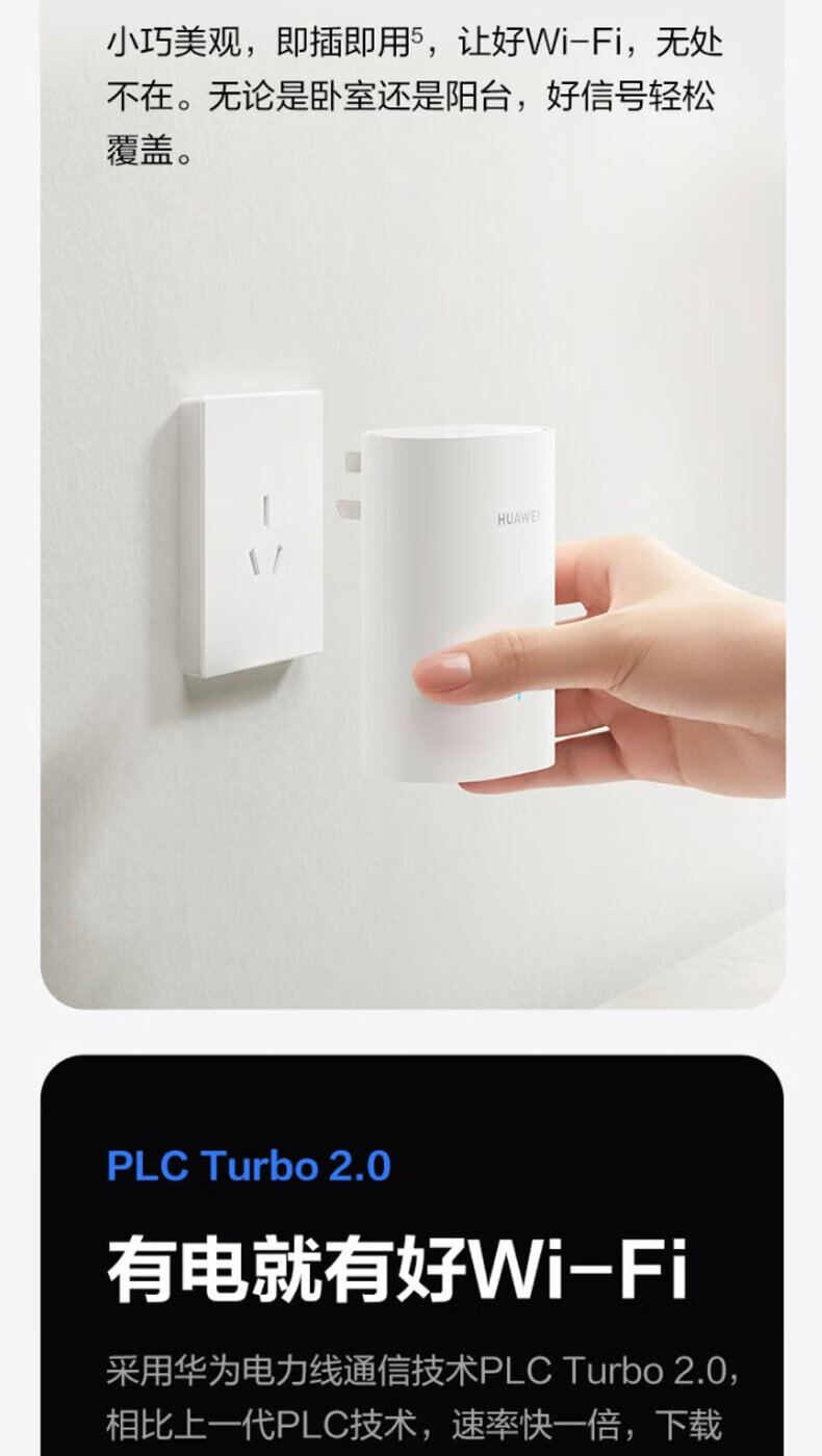 华为凌霄子母路由器千兆q6电力猫全屋wifi6+分布式mesh大户型穿墙无线信号增强放大器 Q6