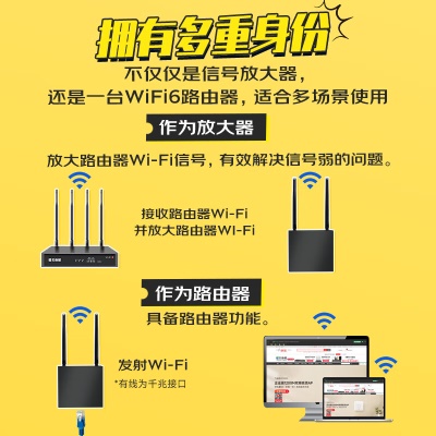 飞鱼星 wifi信号放大器 wifi6千兆1800M wifi增强家用中继器 无线信号扩展器 家用路由器