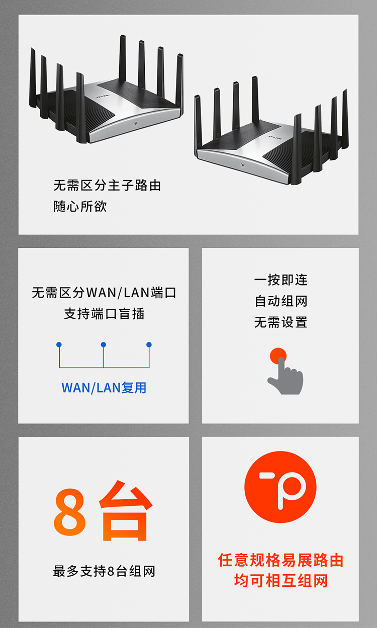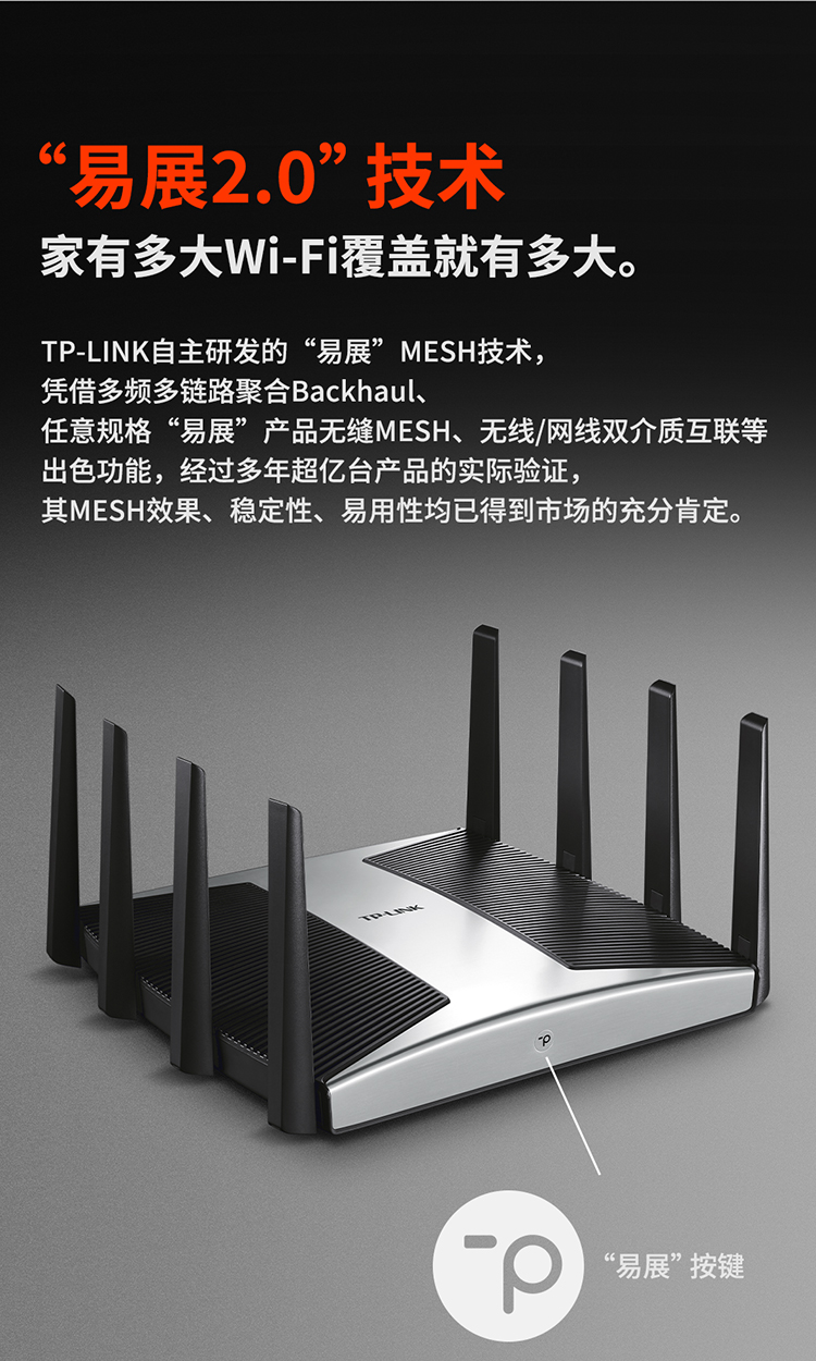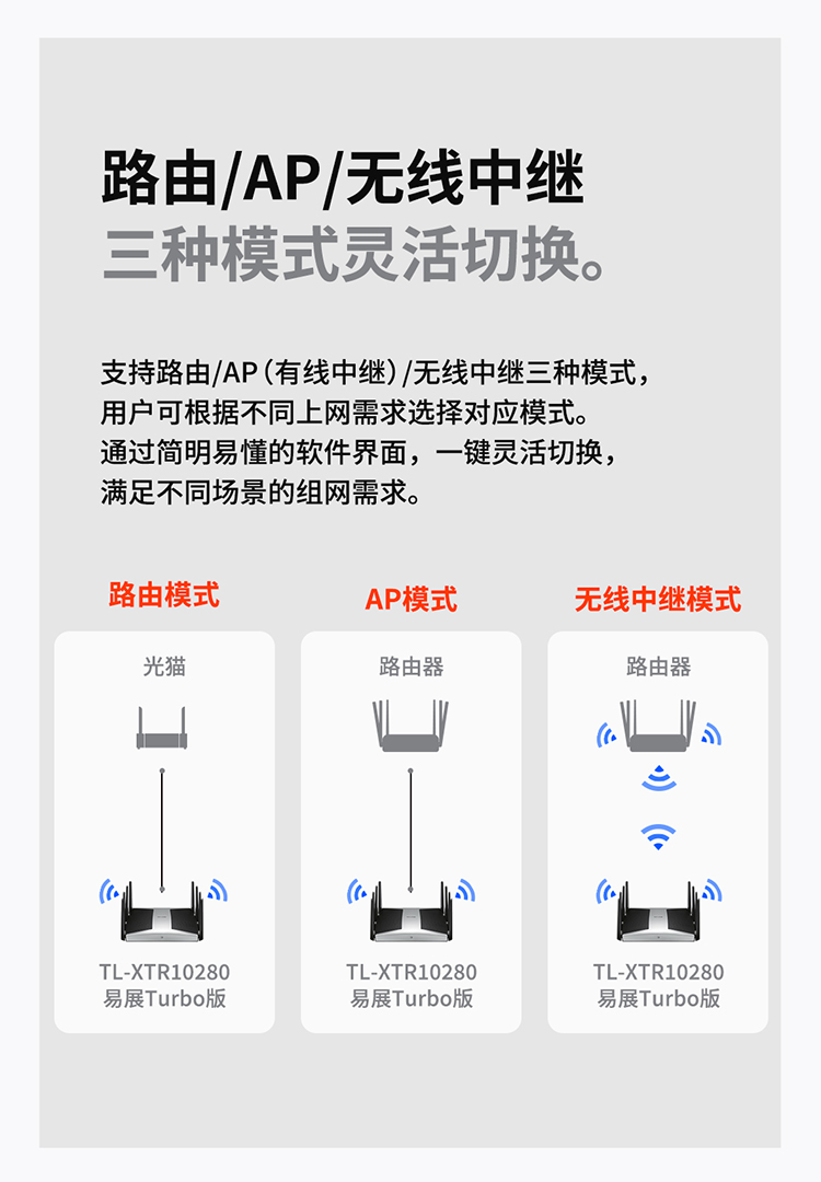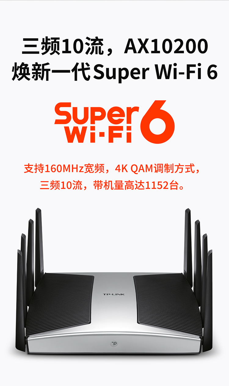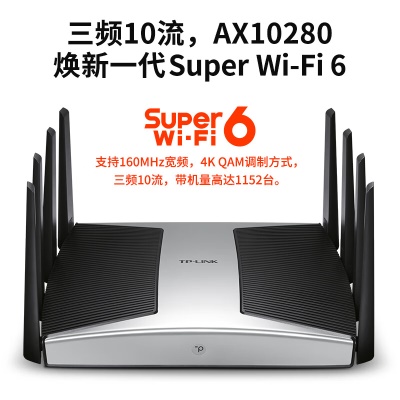 TP-LINK【飞流系列】AX10200三频千兆无线路由器WiFi6智能游戏路由Mesh XTR10280易展Turbo版
