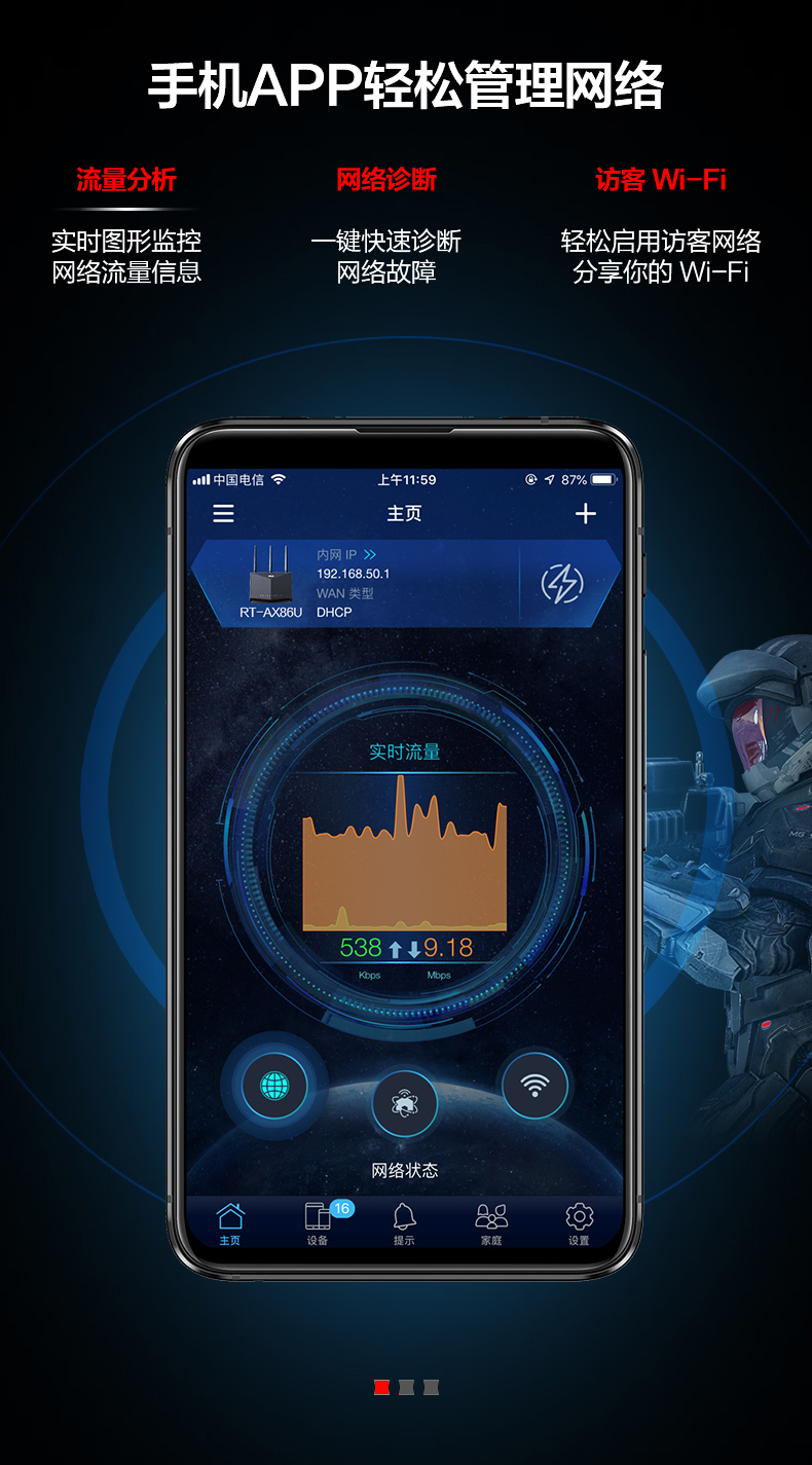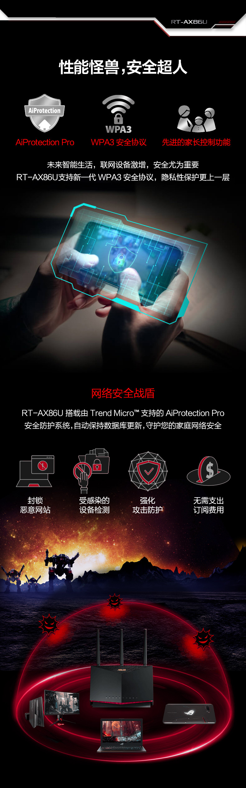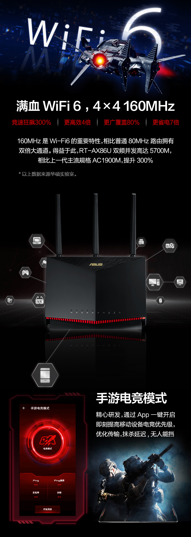 华硕(ASUS) RT-AX86U双频全千兆电竞5700M无线路由器/PS5网络搭档 【WiFi6】 博通四核2.5G端口