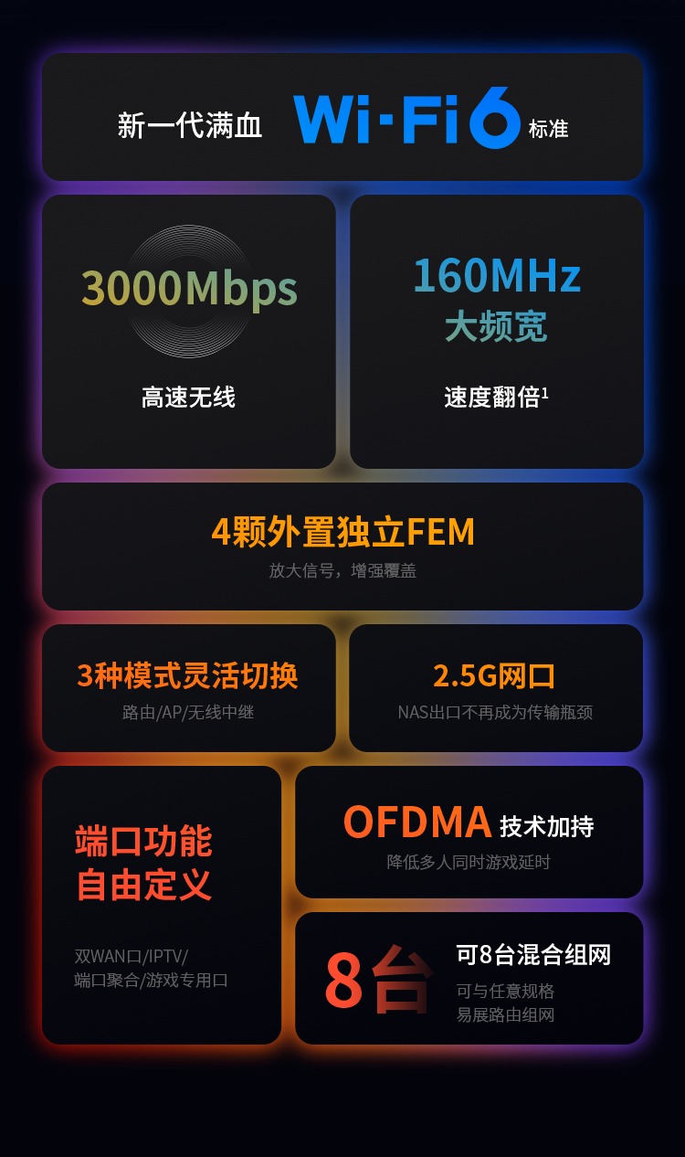 TP-LINK AX3000满血WiFi6千兆双频无线路由器 游戏路由3000M无线速率 支持双宽带接入2.5G网口