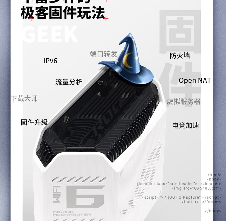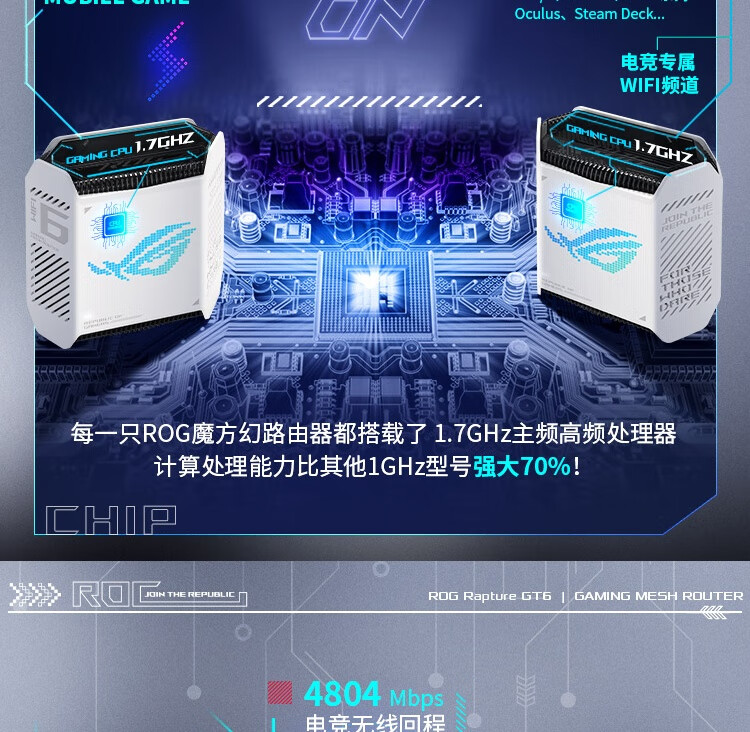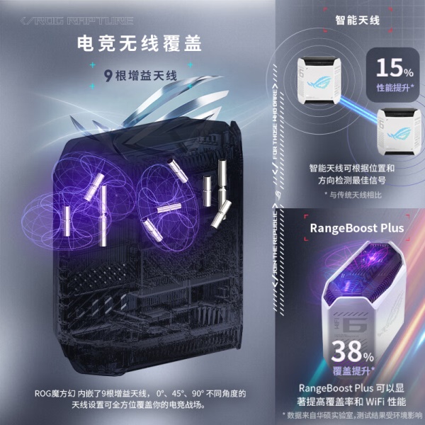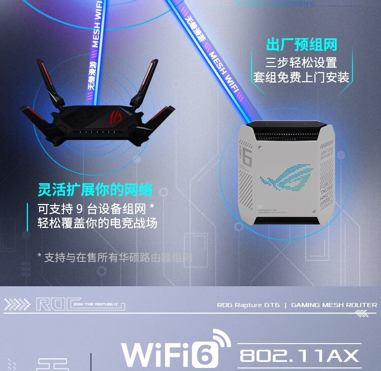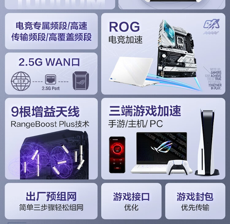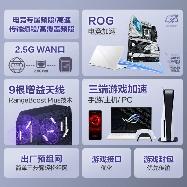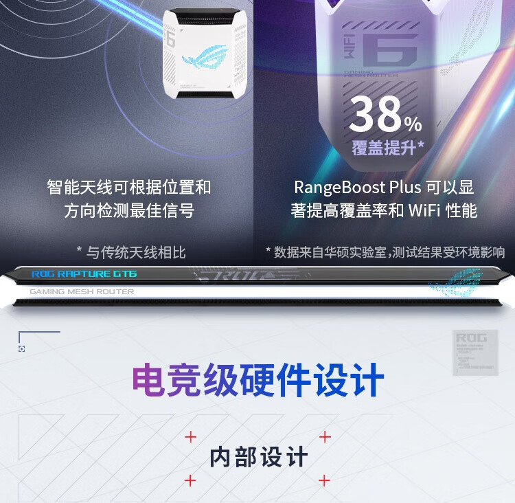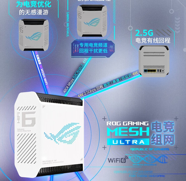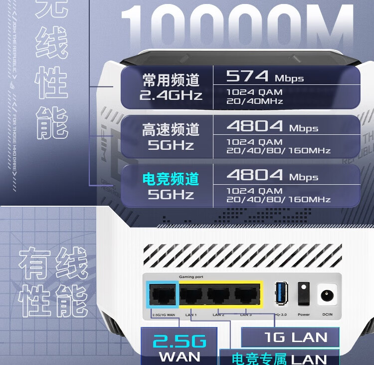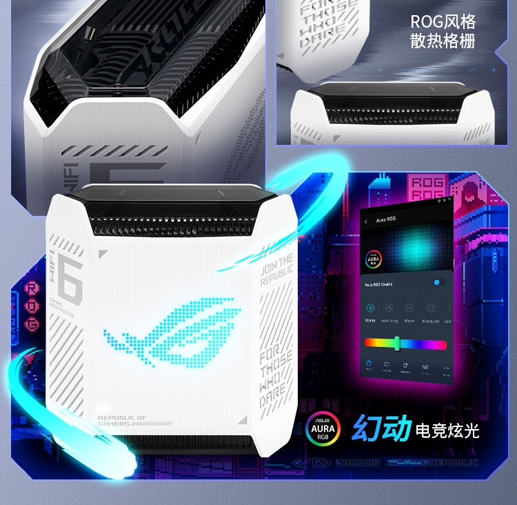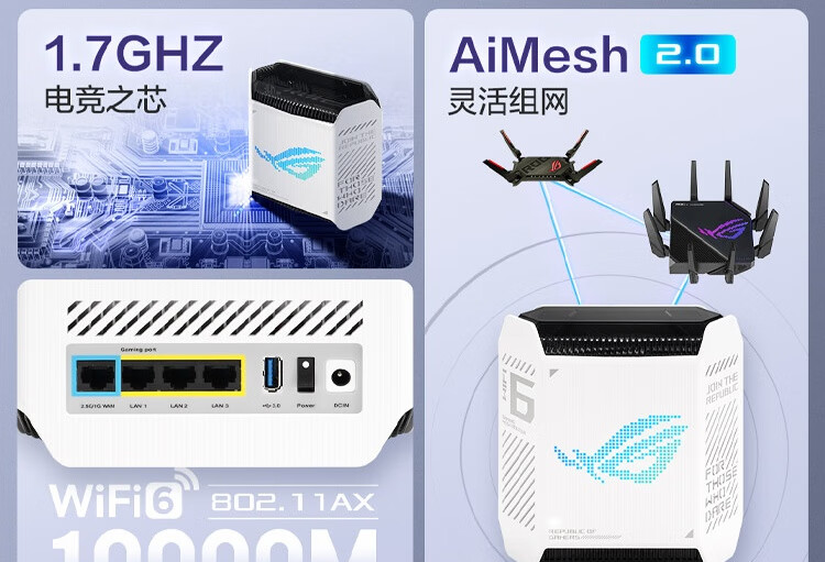 华硕(ASUS)ROG魔方幻三频万兆电竞分布式路由器全屋覆盖WiFi6千兆无线MESH路由器白色单只2.5G口
