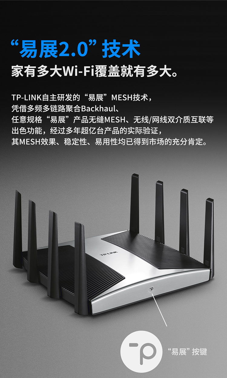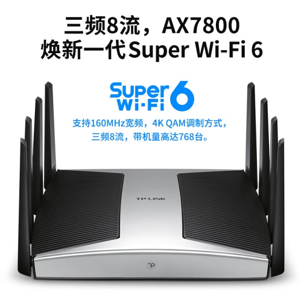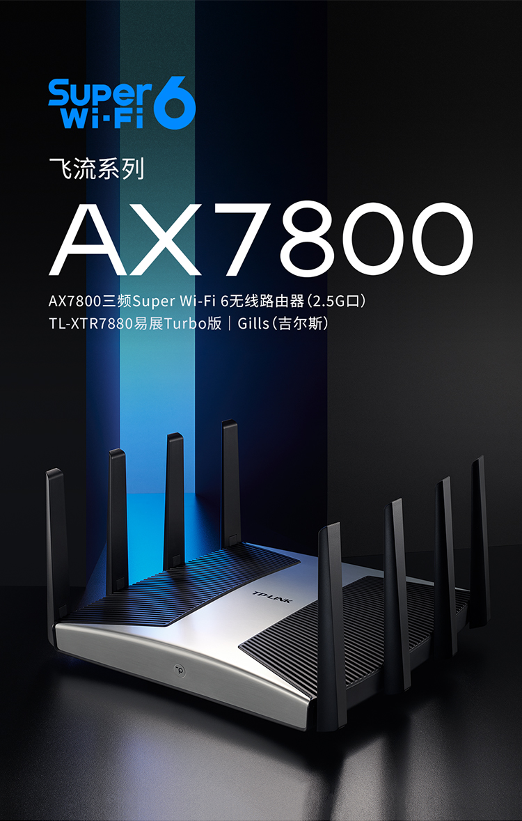 TP-LINK【飞流系列】AX7800三频千兆无线路由器 WiFi6智能游戏路由 Mesh XTR7880易展Turbo版