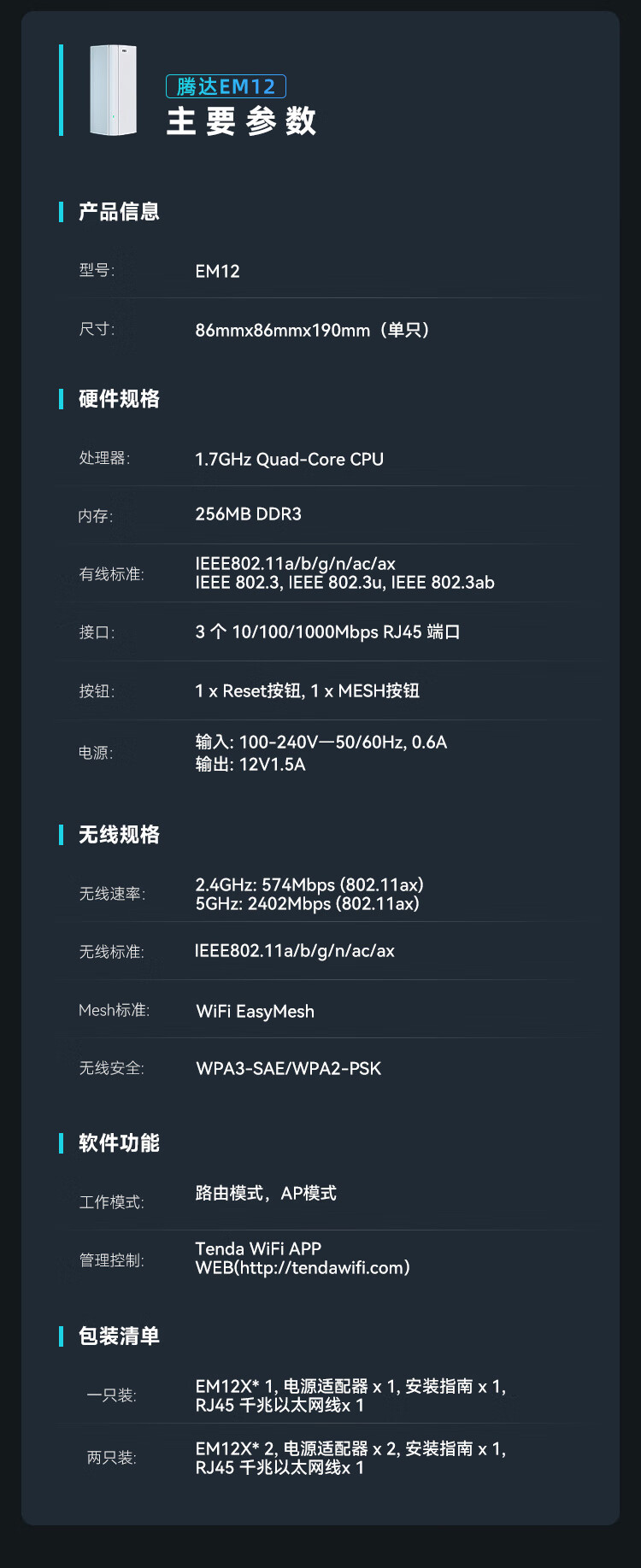 腾达(Tenda) AX3000千兆WiFi6路由器 5G双频 家用智能穿墙路由 一键Mesh组网