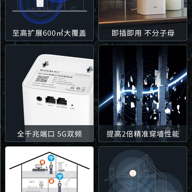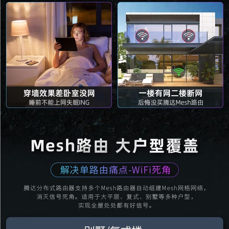 腾达子母路由器家用千兆穿墙宝分布式mesh组网大户型无线全屋wifi5g信号扩大陆游器宽带光纤增强器