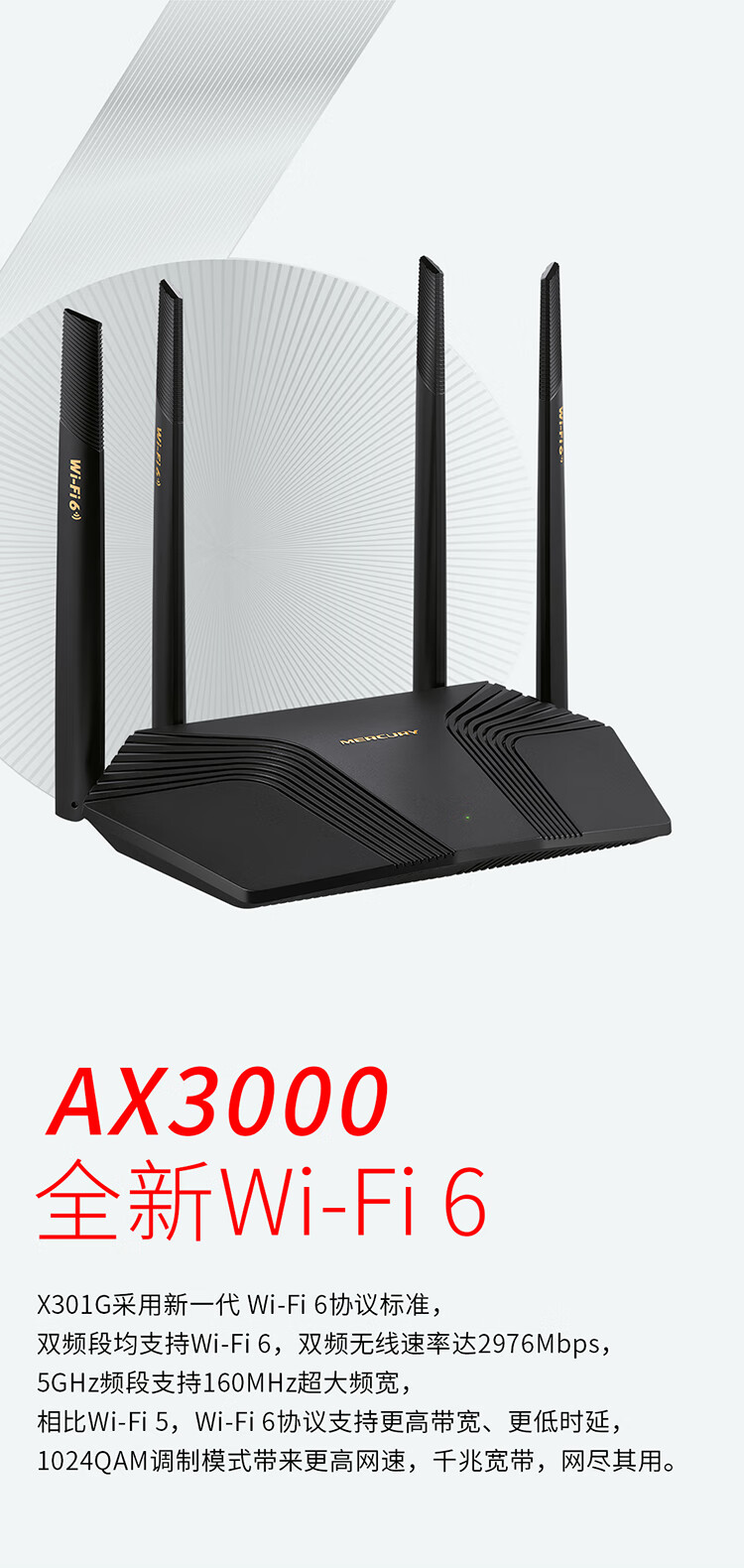 水星(MERCURY)AX3000双频WiFi6双频全千兆无线路由器