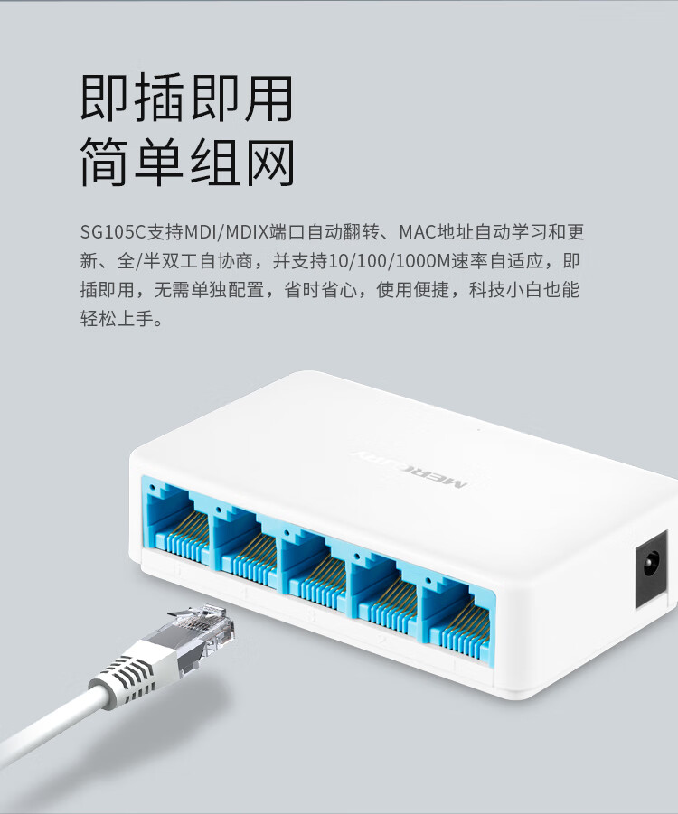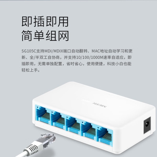 水星(MERCURY)SG105C 5口千兆交换机 4口网线网络分线器
