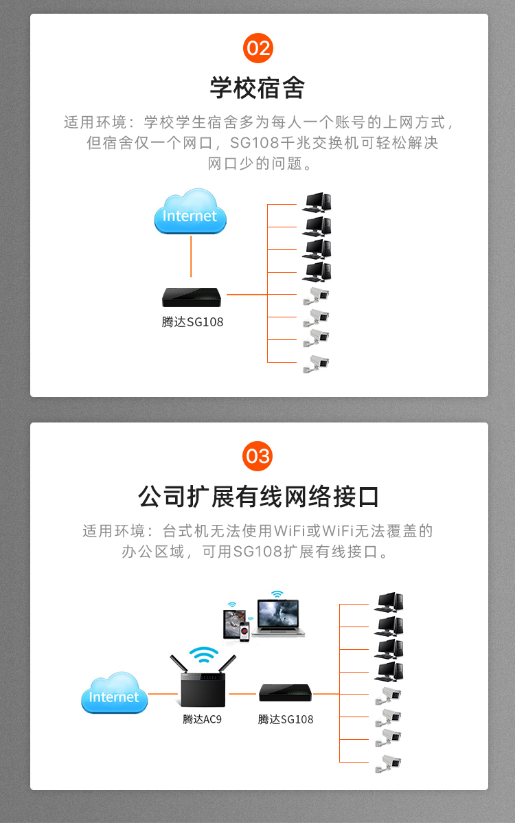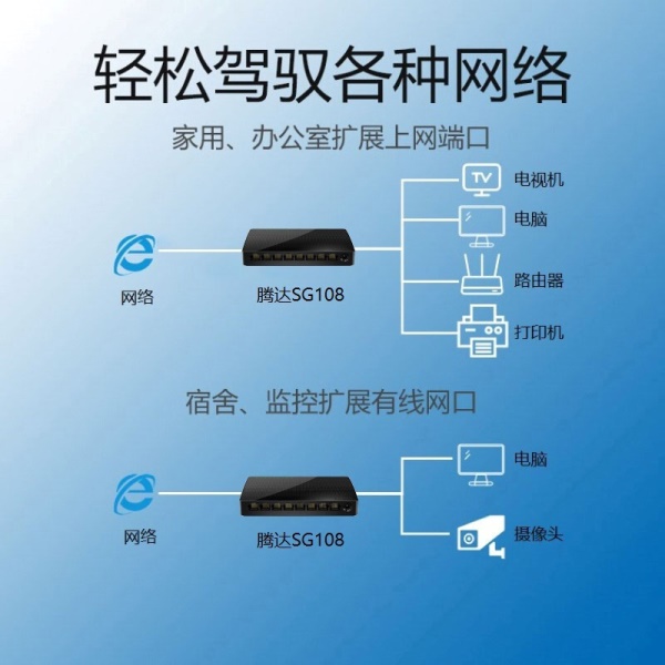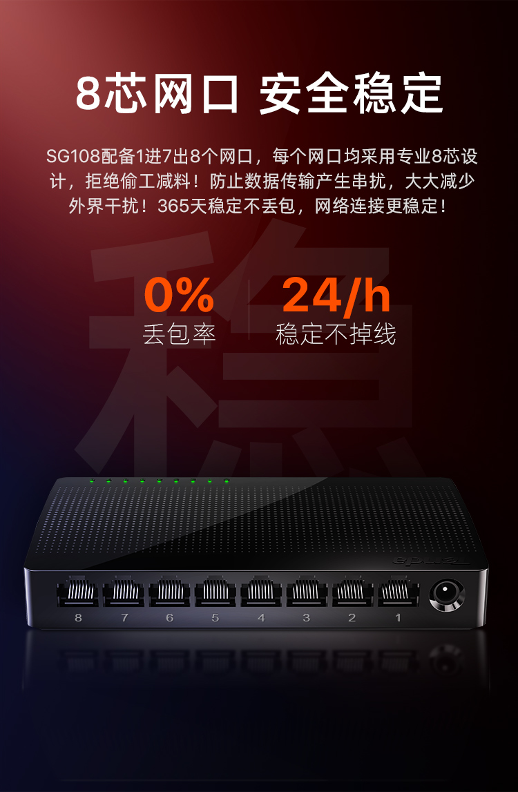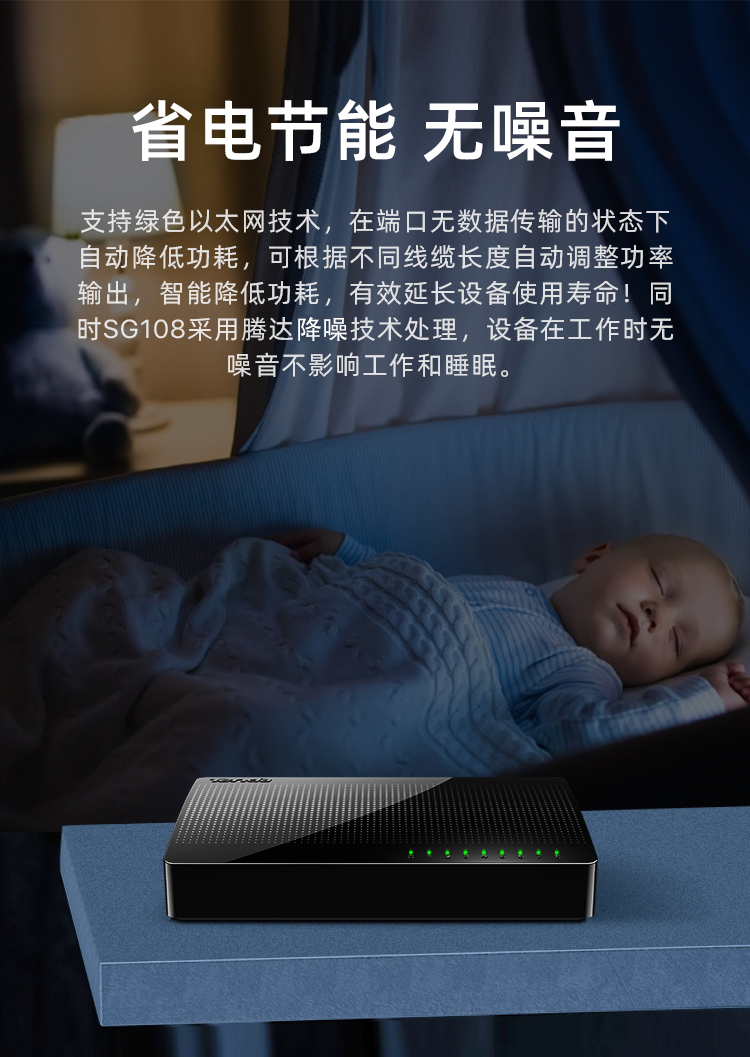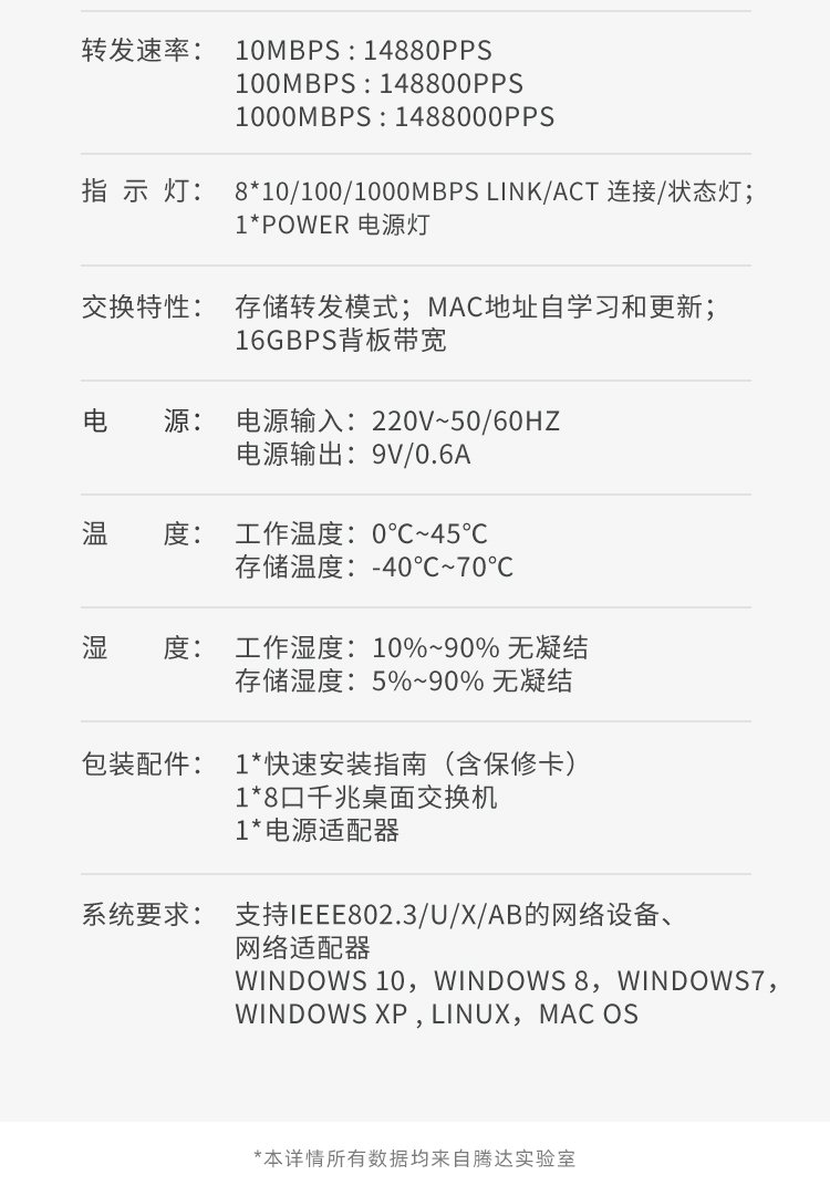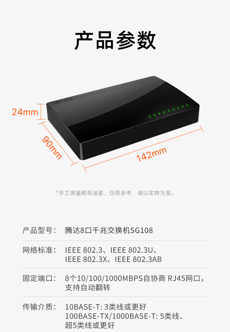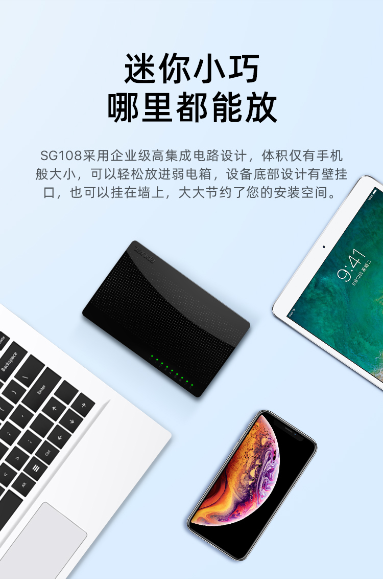 腾达(Tenda)SG108 8口千兆交换机 家用宿舍交换器 监控网络网线分线器 分流器