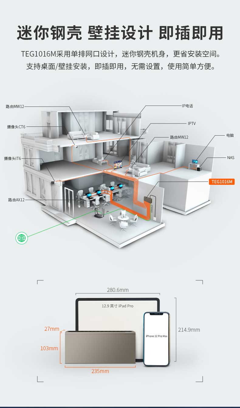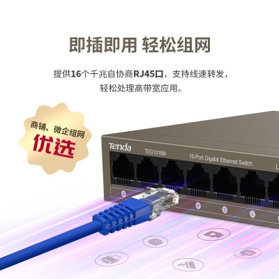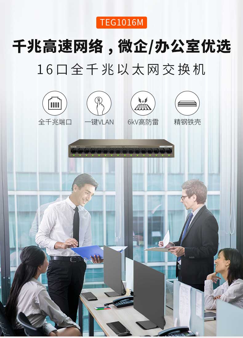 腾达(Tenda)TEG1016M 16口千兆交换机 企业级交换器 工程监控网络分线器 分流器